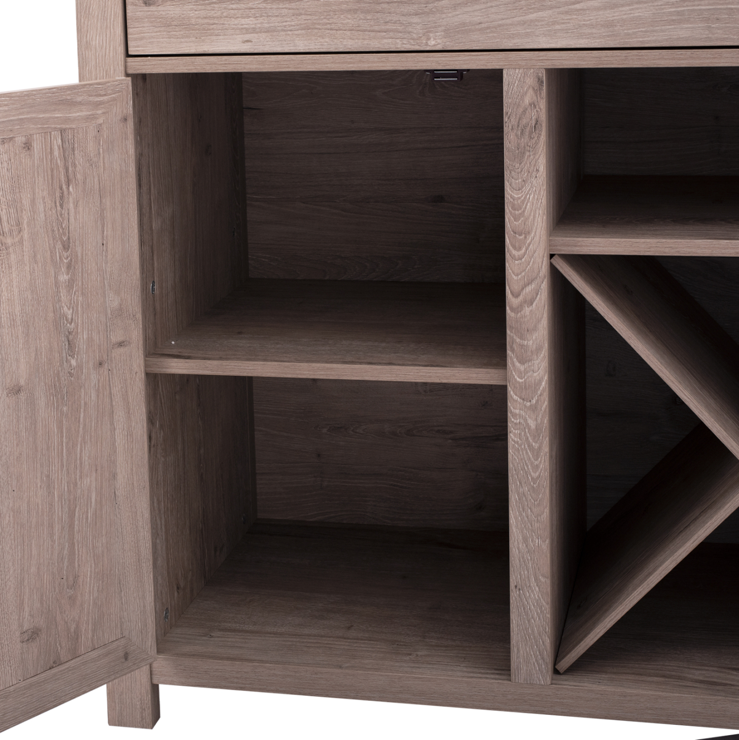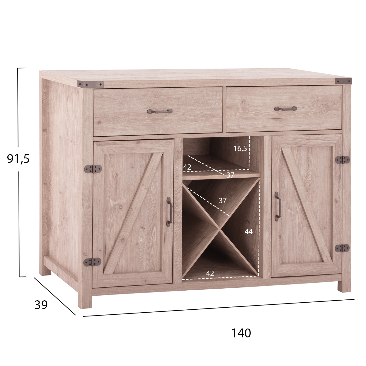 Διαθέτει 2 ντουλάπια, 2 συρτάρια, ένα ράφι και έναν ειδικό χώρο για να τοποθετήσετε τα κρασιά σας.