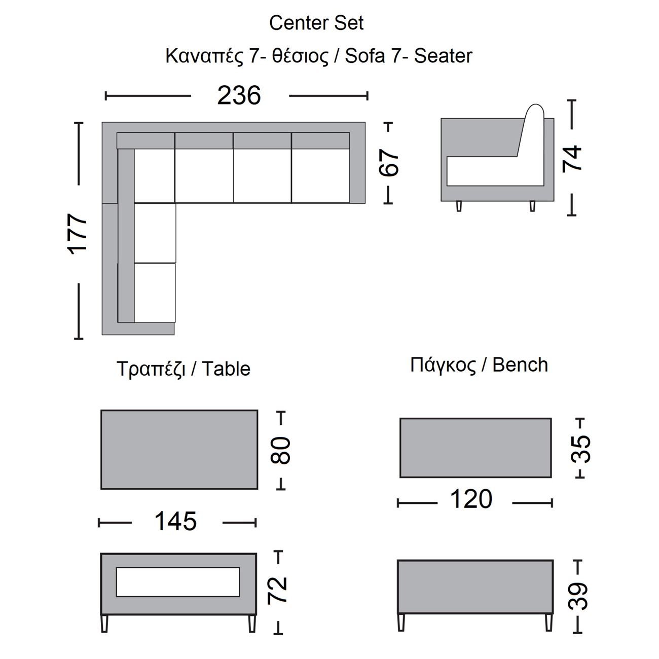 CENTER Set Σαλόνι Καθιστικό – Τραπεζαρία Κήπου 9-θέσεων, Μέταλλο-Wicker Γκρι+ Μαξιλάρια