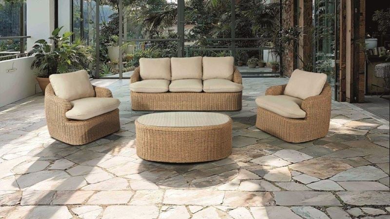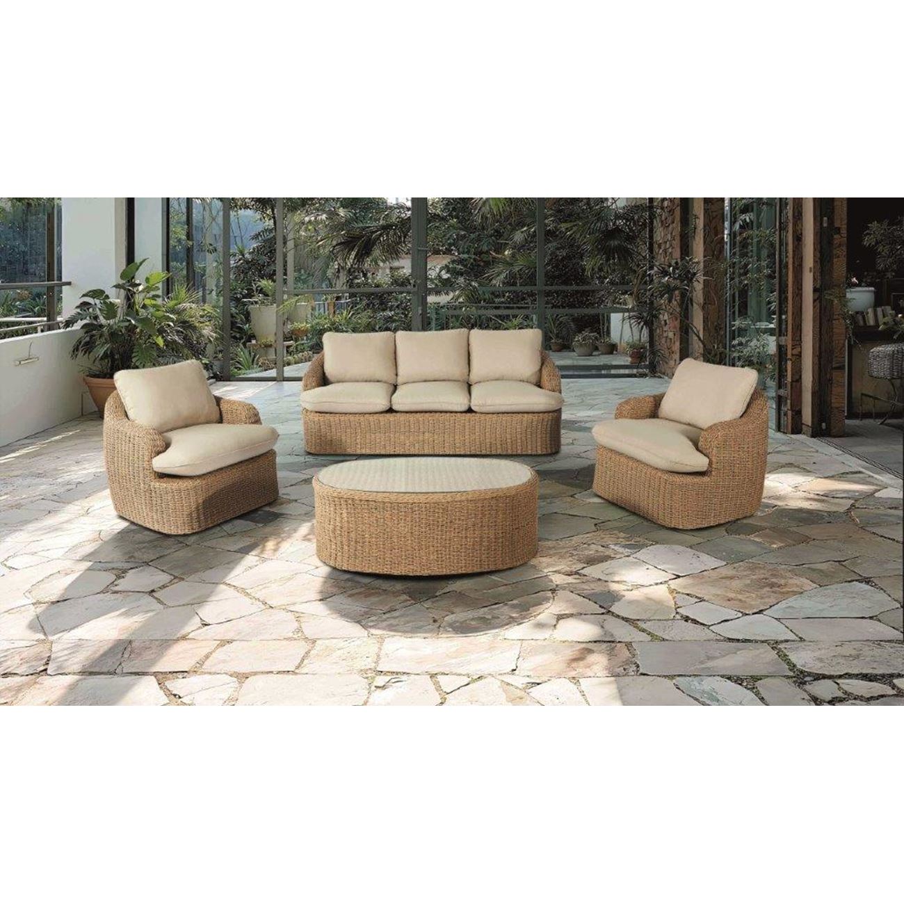 CHICAGO Set Σαλόνι Κήπου: 3θέσ +2 Πολυθρόνες+1 Τραπεζάκι ALU -Wicker Φυσικό, Μαξιλάρια Μπεζ
