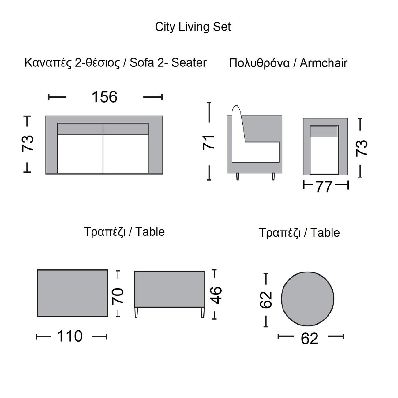 CITY Living Set Σαλόνι Καθιστικό Κήπου – Βεράντας Alu Ανθρακί – Μπεζ