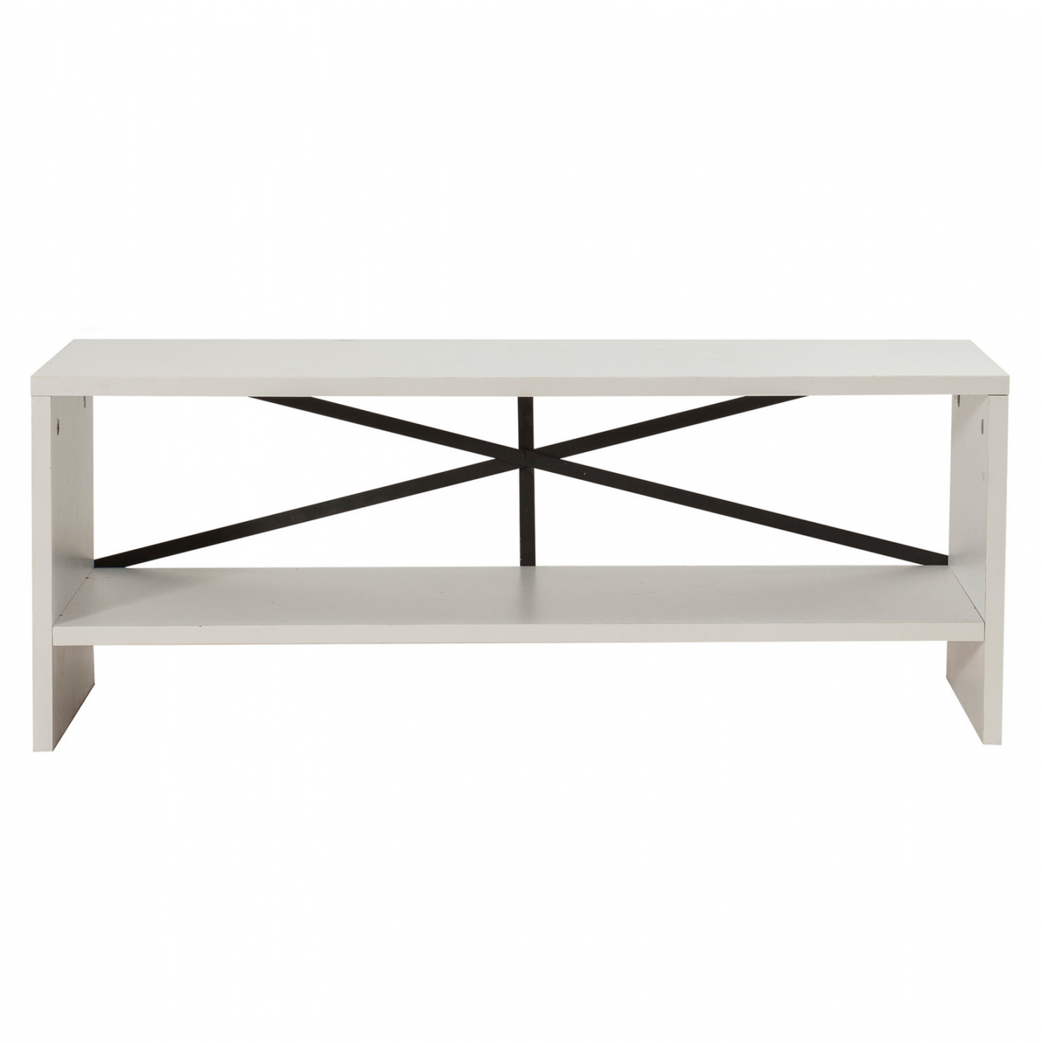 Έπιπλο τηλεόρασης σε μοντέρνο σχεδιασμό, κατασκευασμένο από ανθεκτική μελαμίνη υψηλής ποιότητας πάχους 18mm, σε λευκή απόχρωση με μαύρες λεπτομέρειες.