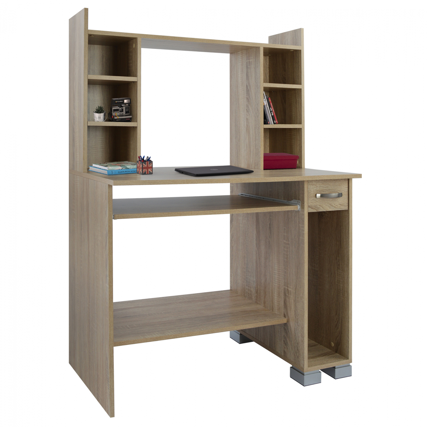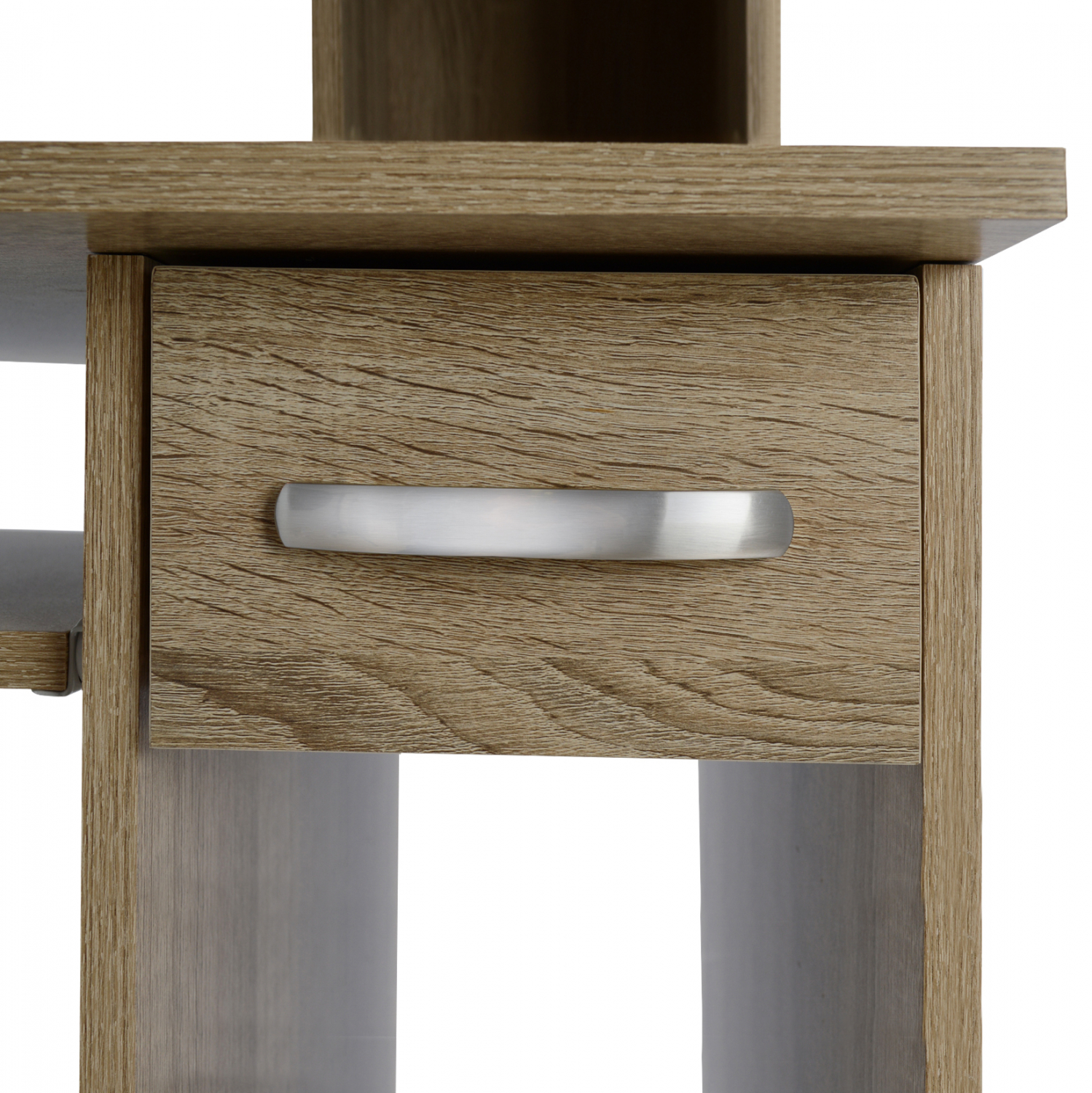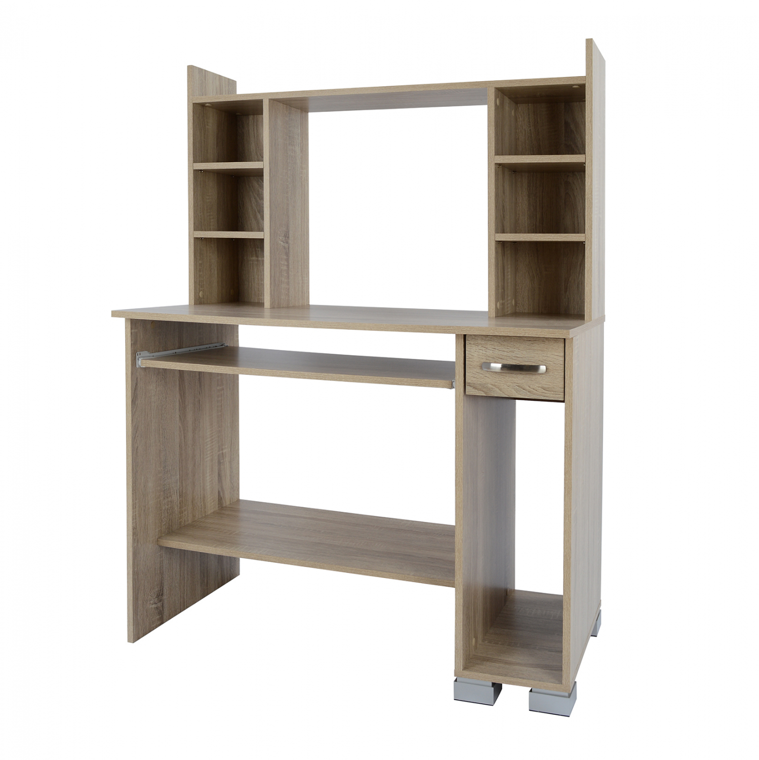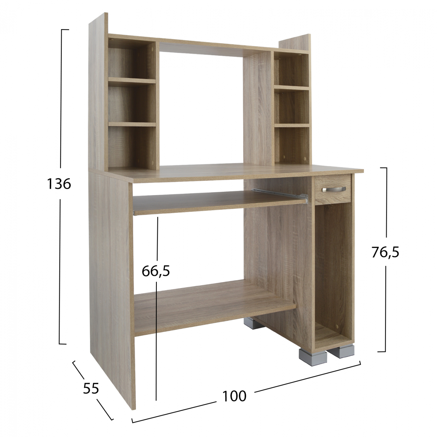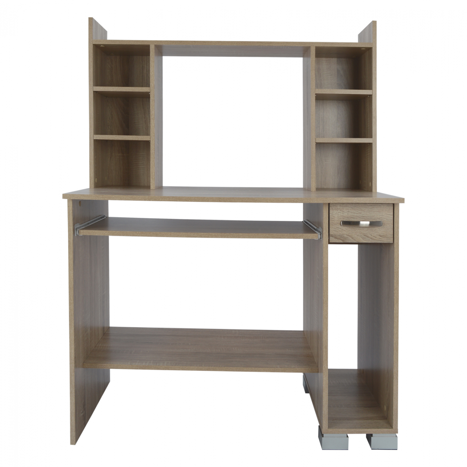 Γραφείο μελαμίνης σε Sonama απόχρωση, διαθέτει ένα συρτάρι και ράφια τα οποία είναι πολύ βολικά, επίσης έχει και συρόμενο ράφι για το πληκτρολόγιο.