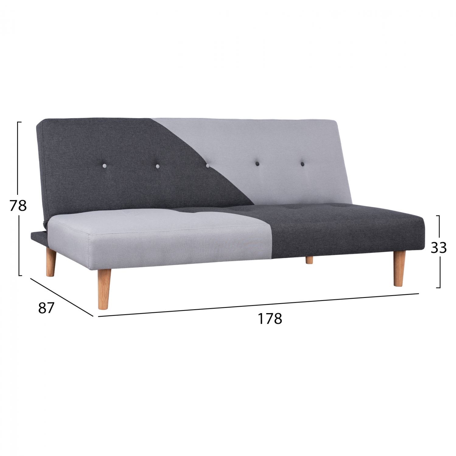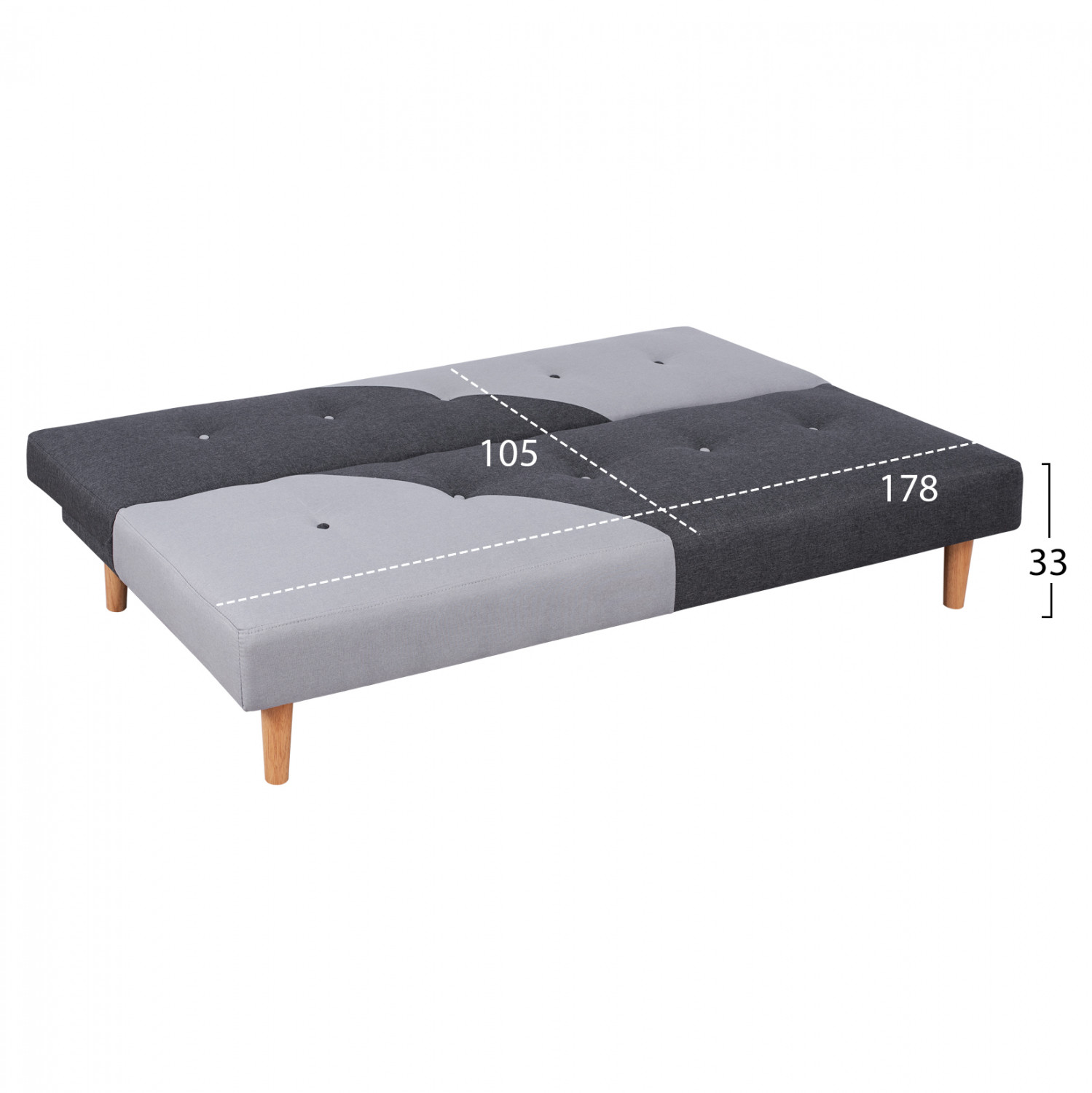 Καναπές κρεβάτι, επενδεδυμένος με ύφασμα σε σκούρο και ανοιχτό γκρι απόχρωση 178X87X78Y εκ.