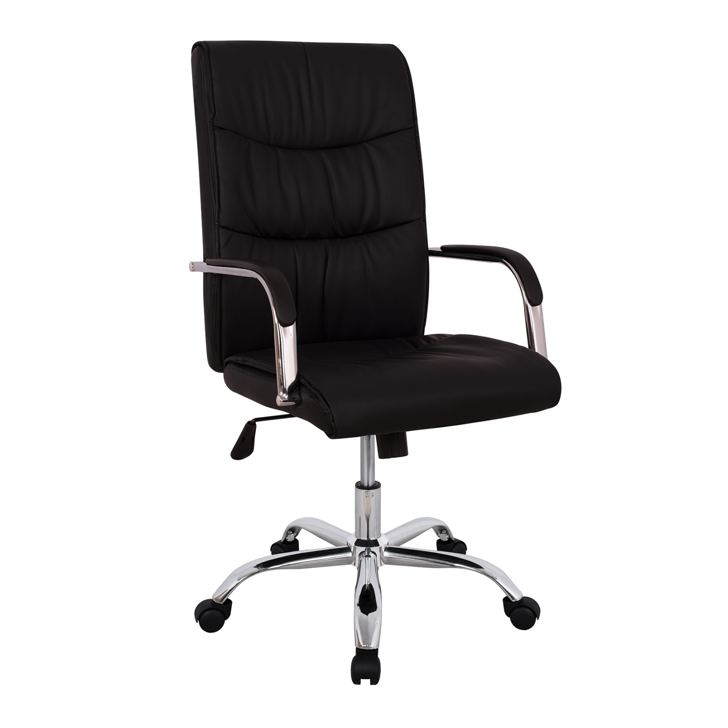 Διευθυντική καρέκλα γραφείου JACOB σε μαύρο χρώμα. Μια «πλούσια» καρέκλα γραφείου με ψηλά επίπεδα inox μπράτσα με στρογγυλεμένες γωνίες, επενδυμένα με μια λεπτή στρώση αφρολέξ σε PU δέρμα. Η πλάτη είναι ανατομική και ψηλή με «μαξιλάρι» από αφρώδη υλικά για άνεση κατά την χρήση και υποστηρίζει ολόκληρο τον κορμό σας, ενώ είναι επενδυμένη με υψηλής ποιότητας PU δέρμα , όπως επίσης και το φαρδύ και αναπαυτικό κάθισμα με την αναπαυτική επιφάνεια. Η βάση είναι inox σε σχήμα «αστέρι».