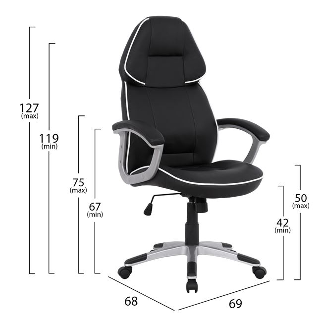 ΚΑΡΕΚΛΑ ΓΡΑΦΕΙΟΥ GAMING BUCKET HM1007.04 ΜΑΥΡΟ PU + ΑΣΠΡΗ ΡΙΓΑ 69x68x(119-127)cm