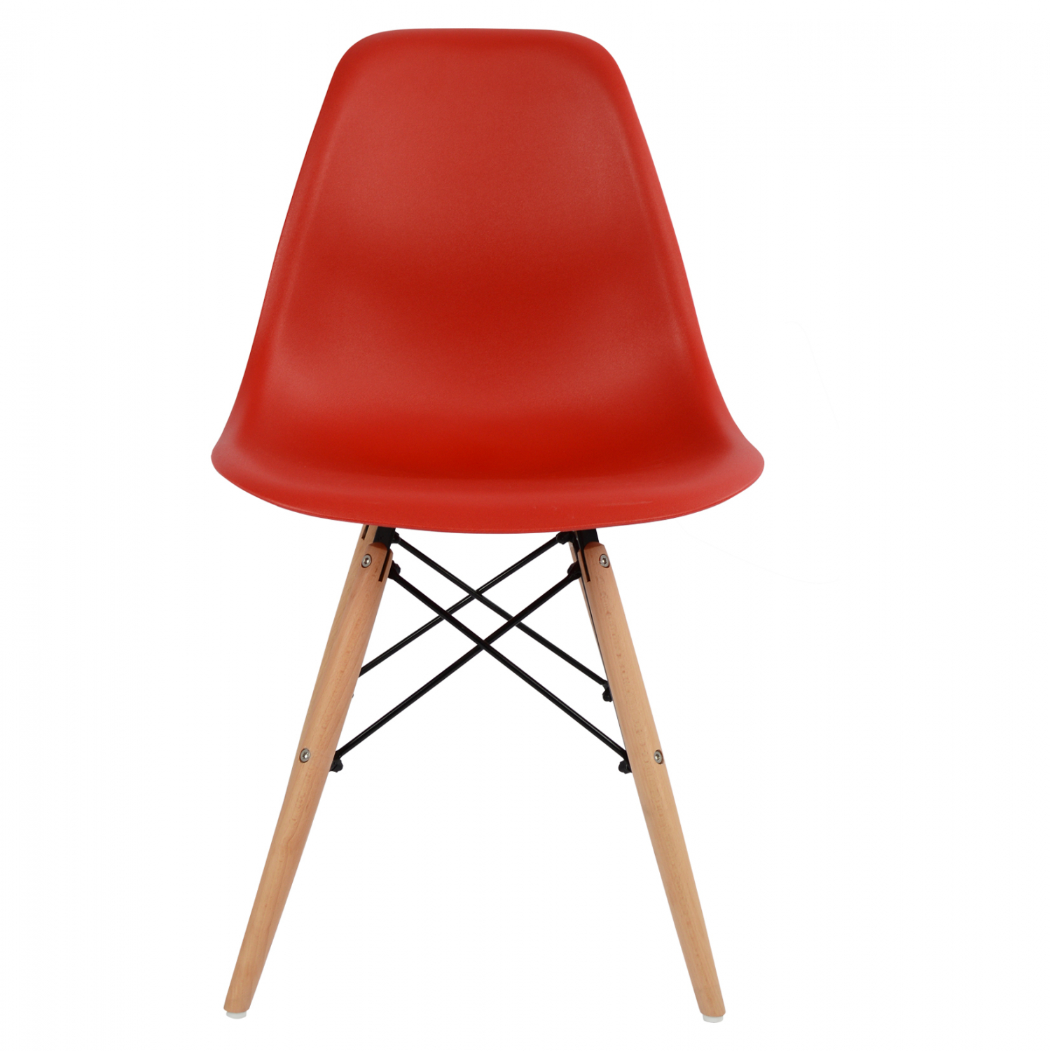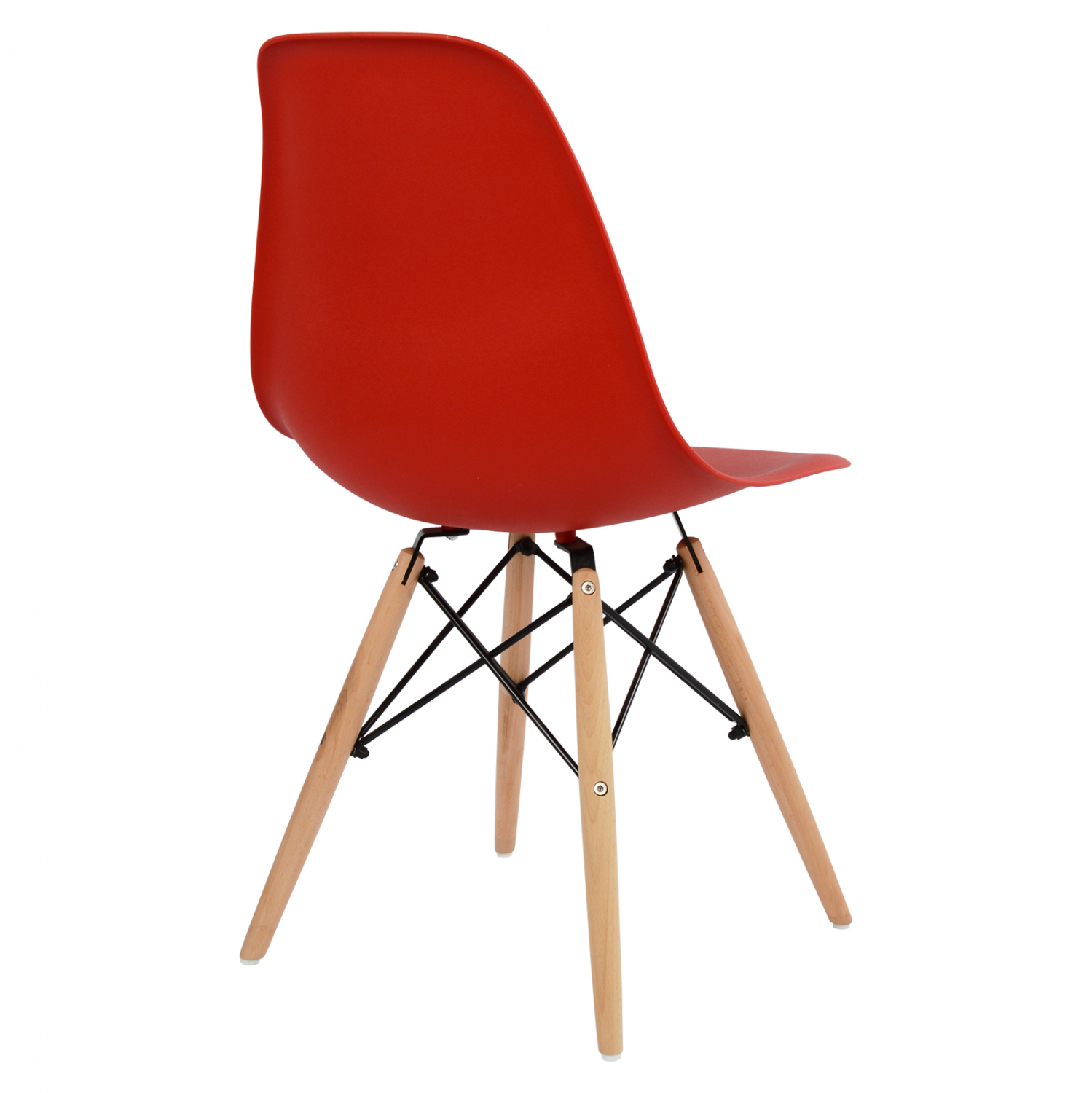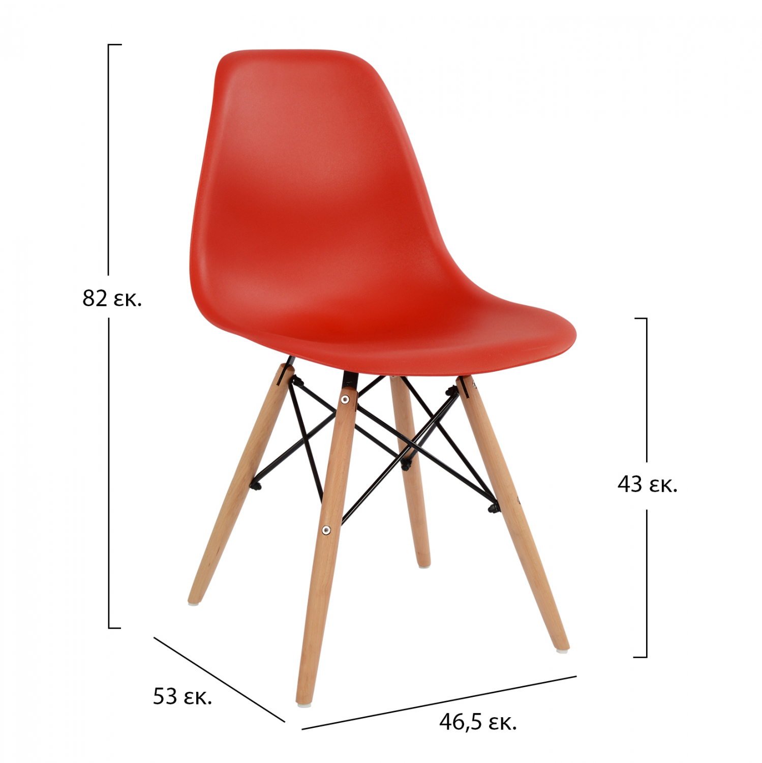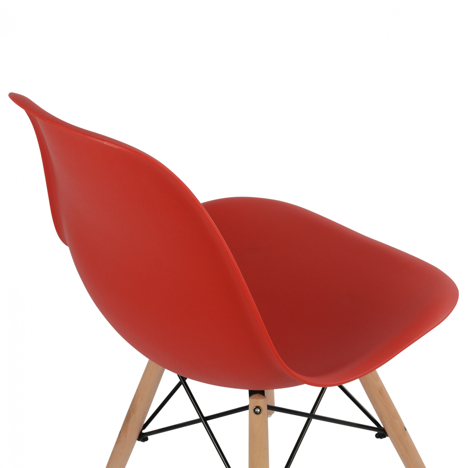 Καρέκλα “Twist” από πολυπροπυλένιο σε mat υφή και κόκκινο χρώμα. Τα πόδια της καρέκλας είναι από μασίφ ξύλο.