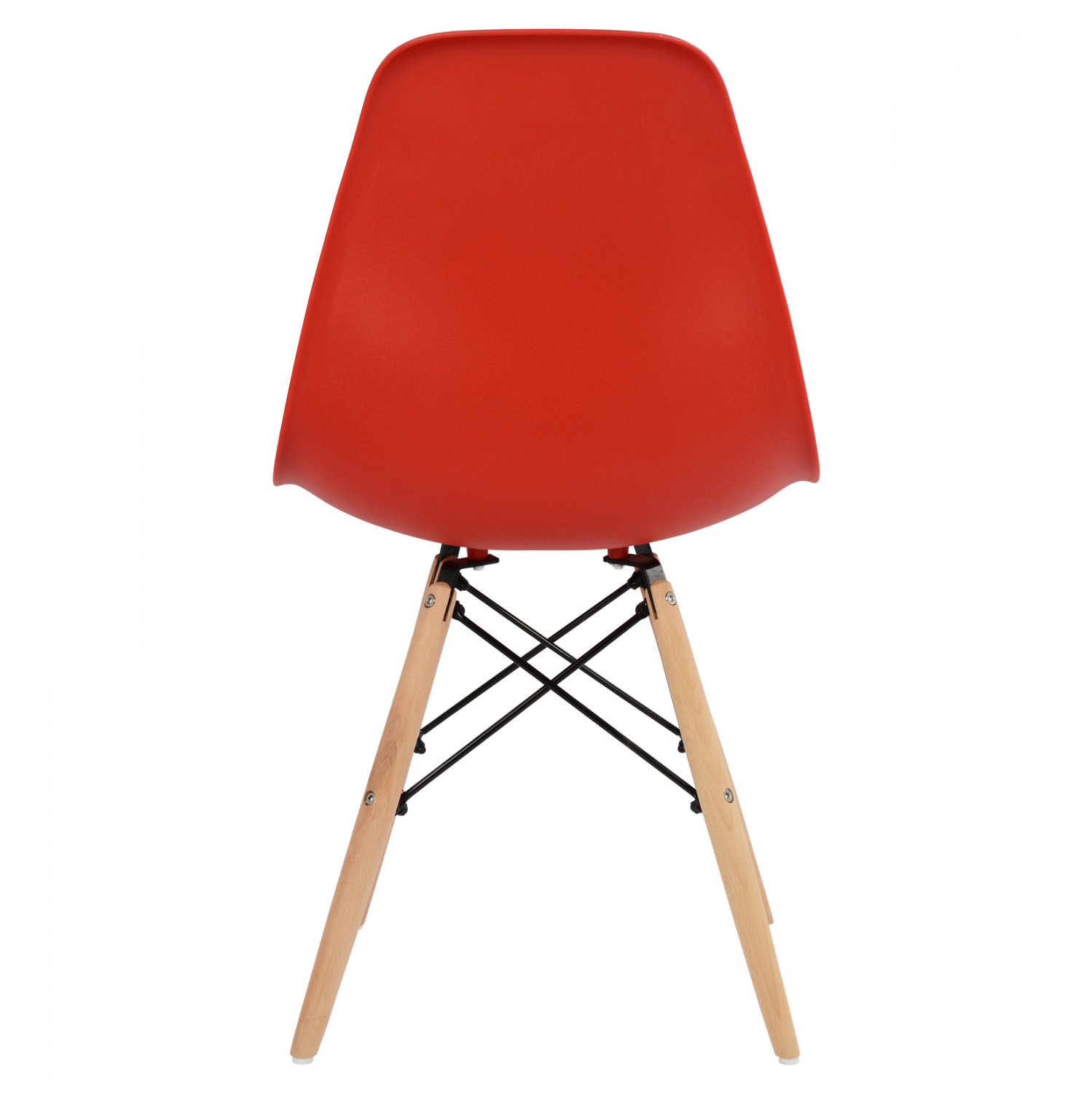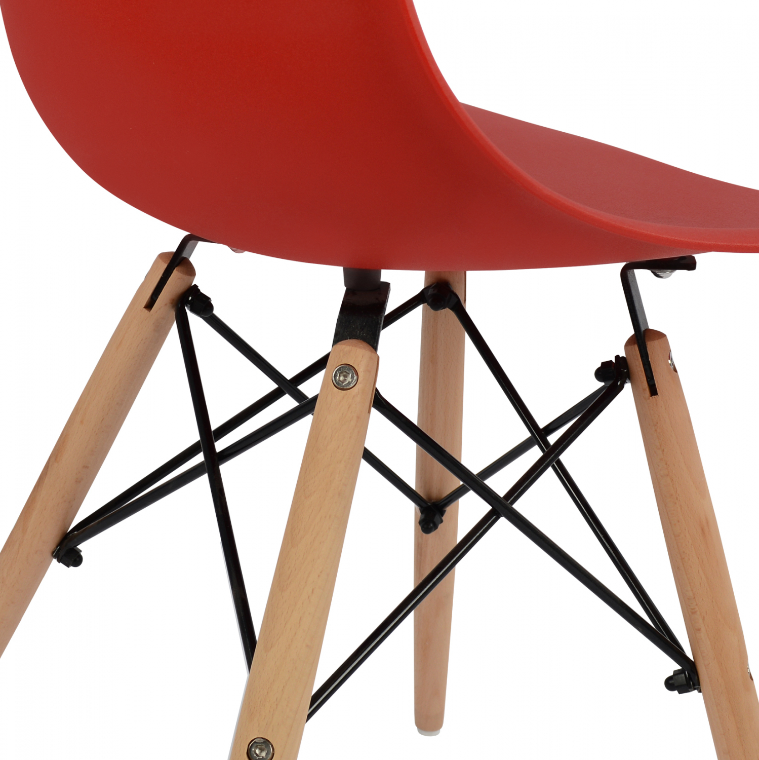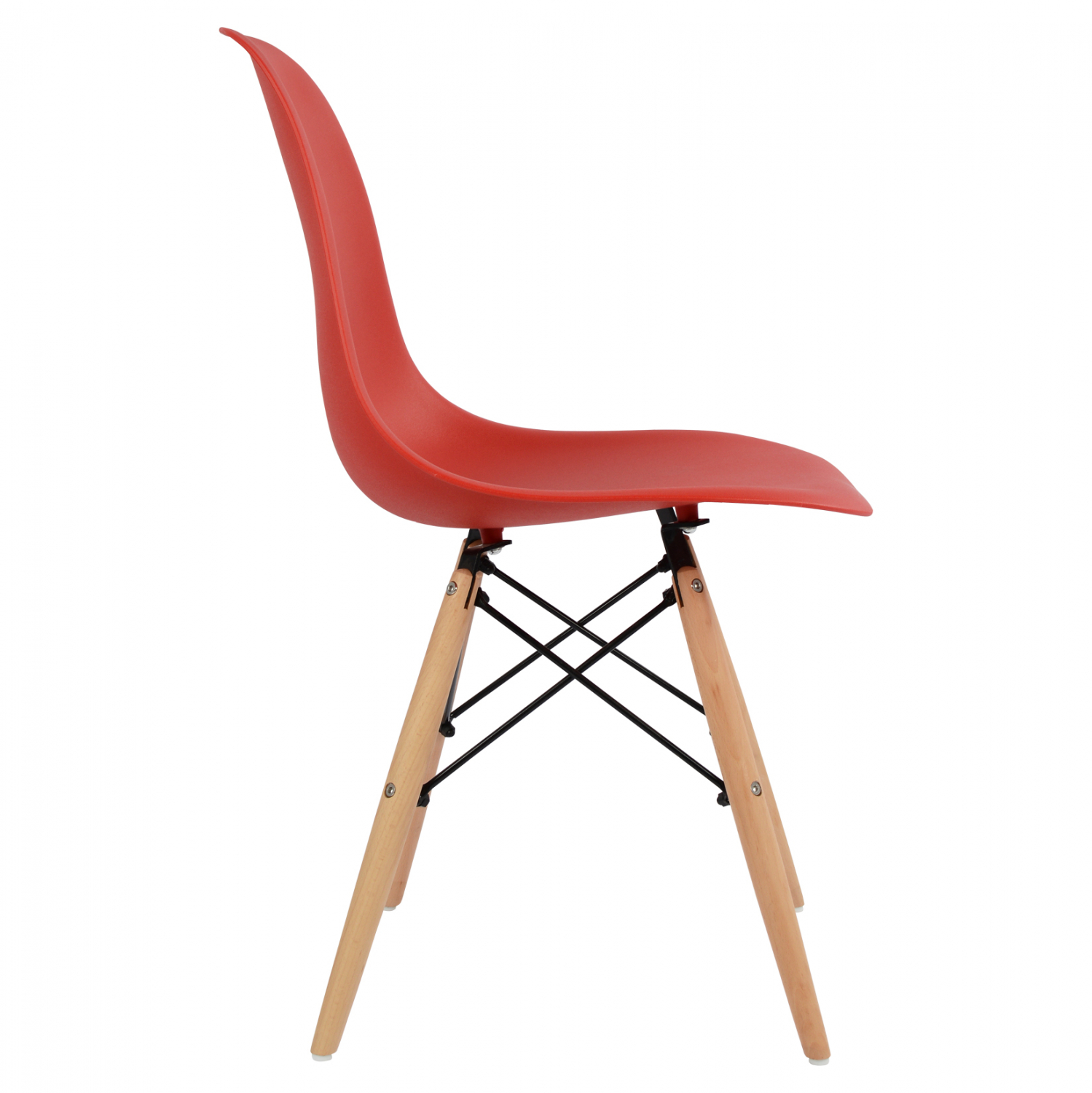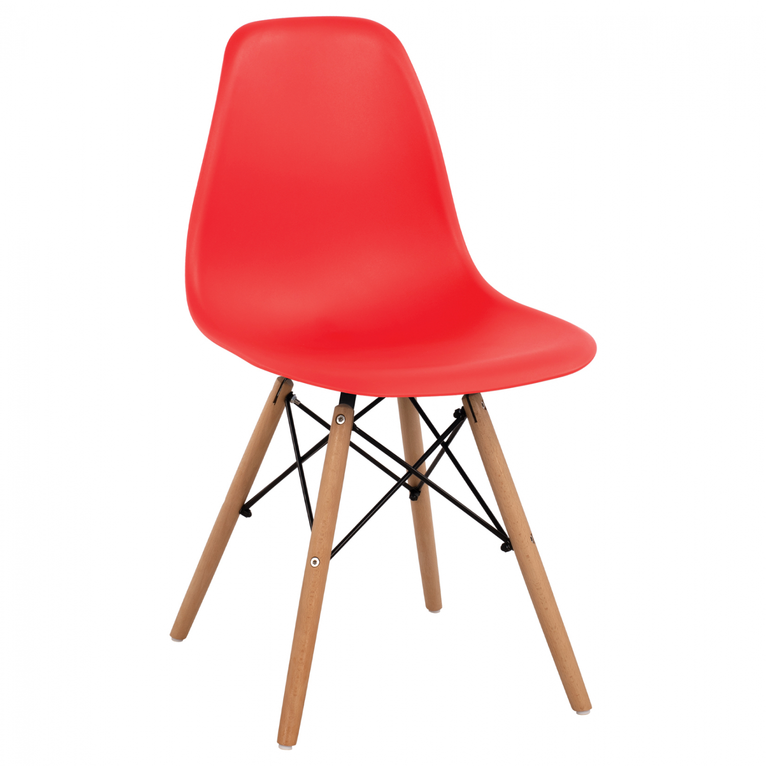 Καρέκλα “Twist” από πολυπροπυλένιο σε mat υφή και κόκκινο χρώμα. Τα πόδια της καρέκλας είναι από μασίφ ξύλο.