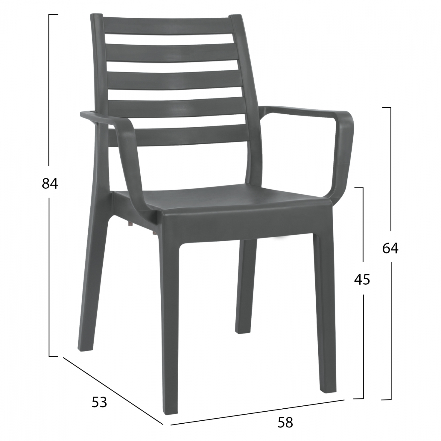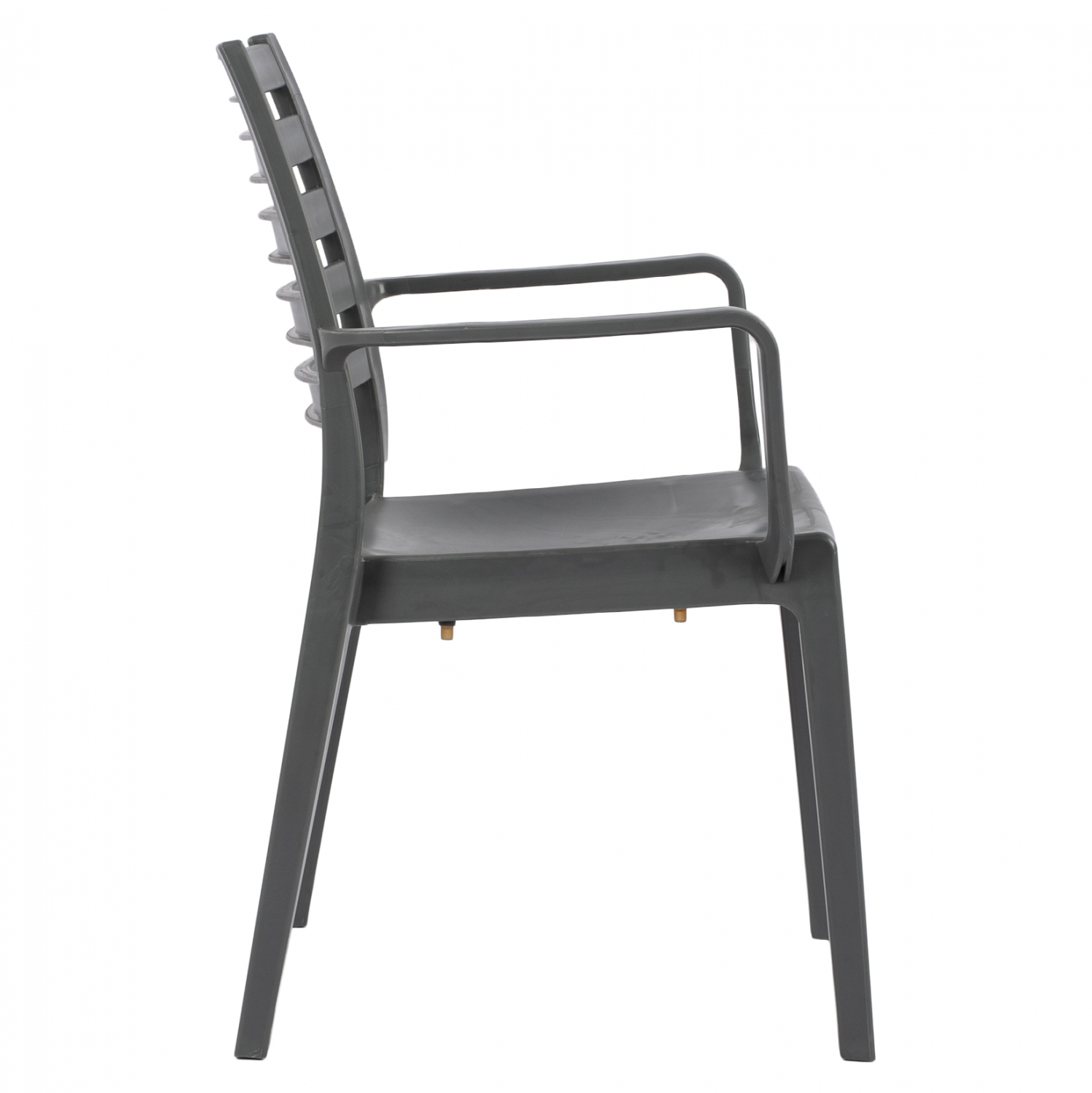 Μοντέρνα πολυθρόνα JARDIN, κατασκευασμένη από πολυπροπυλένιο σε ανθρακί απόχρωση.