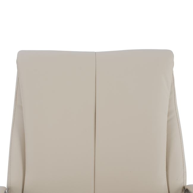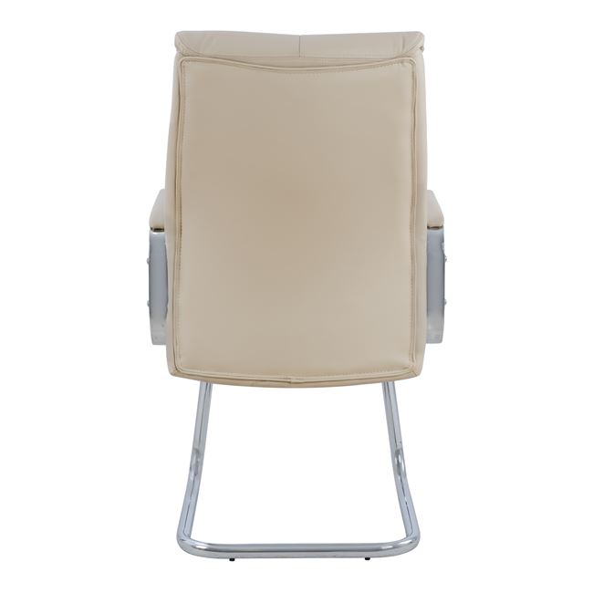 Καρέκλα συνεργασίας με μπράτσα, από υψηλής ποιότητας PU σε εκρού απόχρωση και σκελετό από χρωμιομένο ατσάλι για ύψιστη ασφάλεια, σταθερότητα και αντοχή.