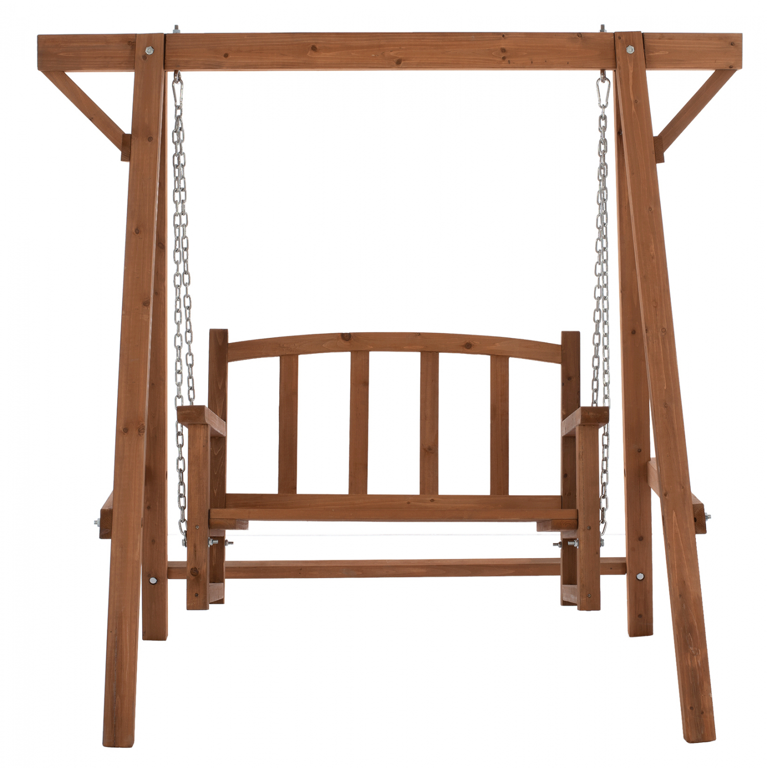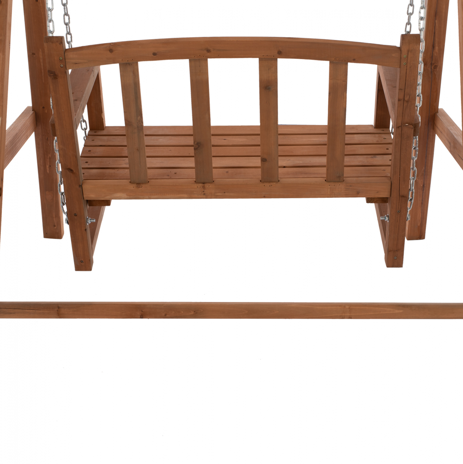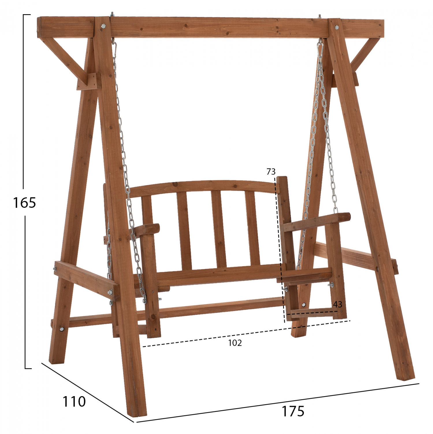 Λιτή και κομψή διθέσια κούνια, σε καρυδί απόχρωση.