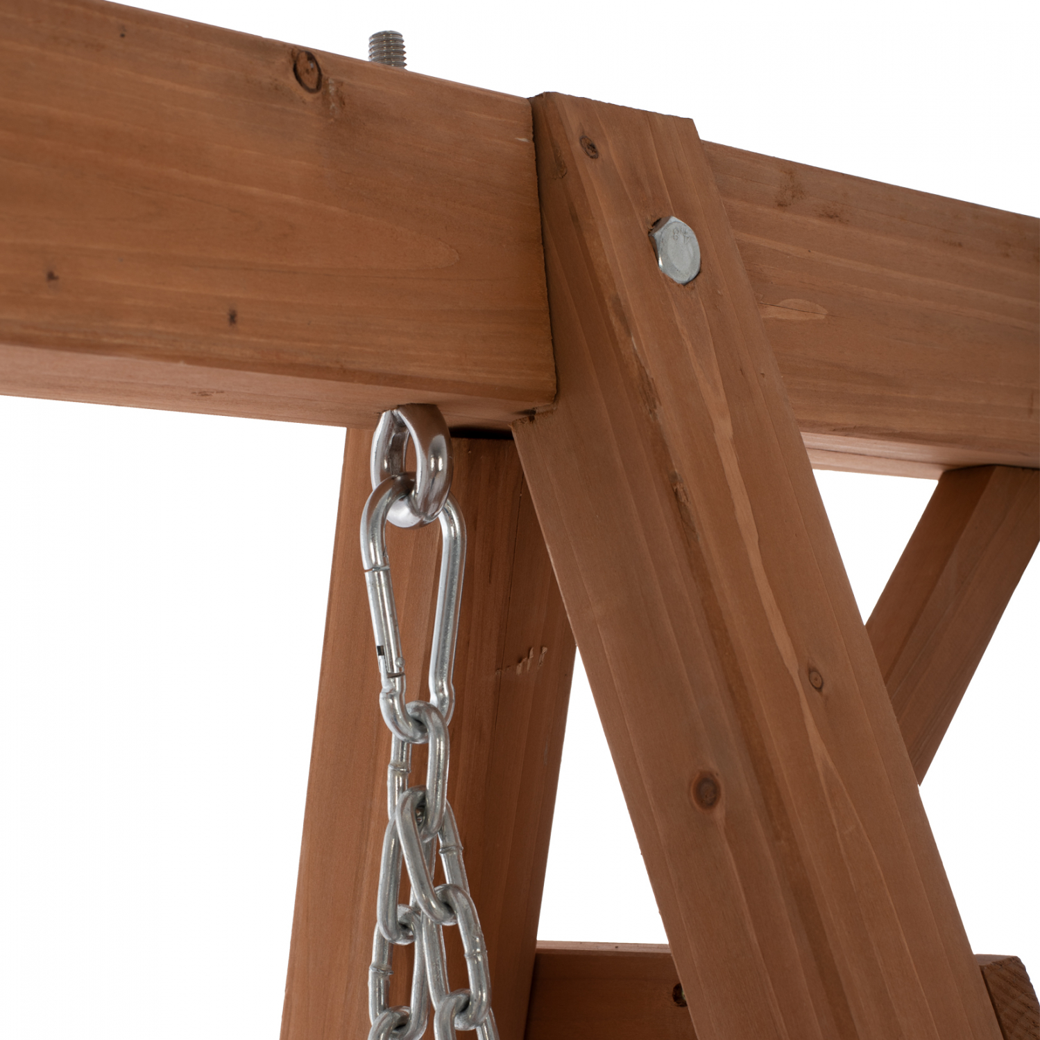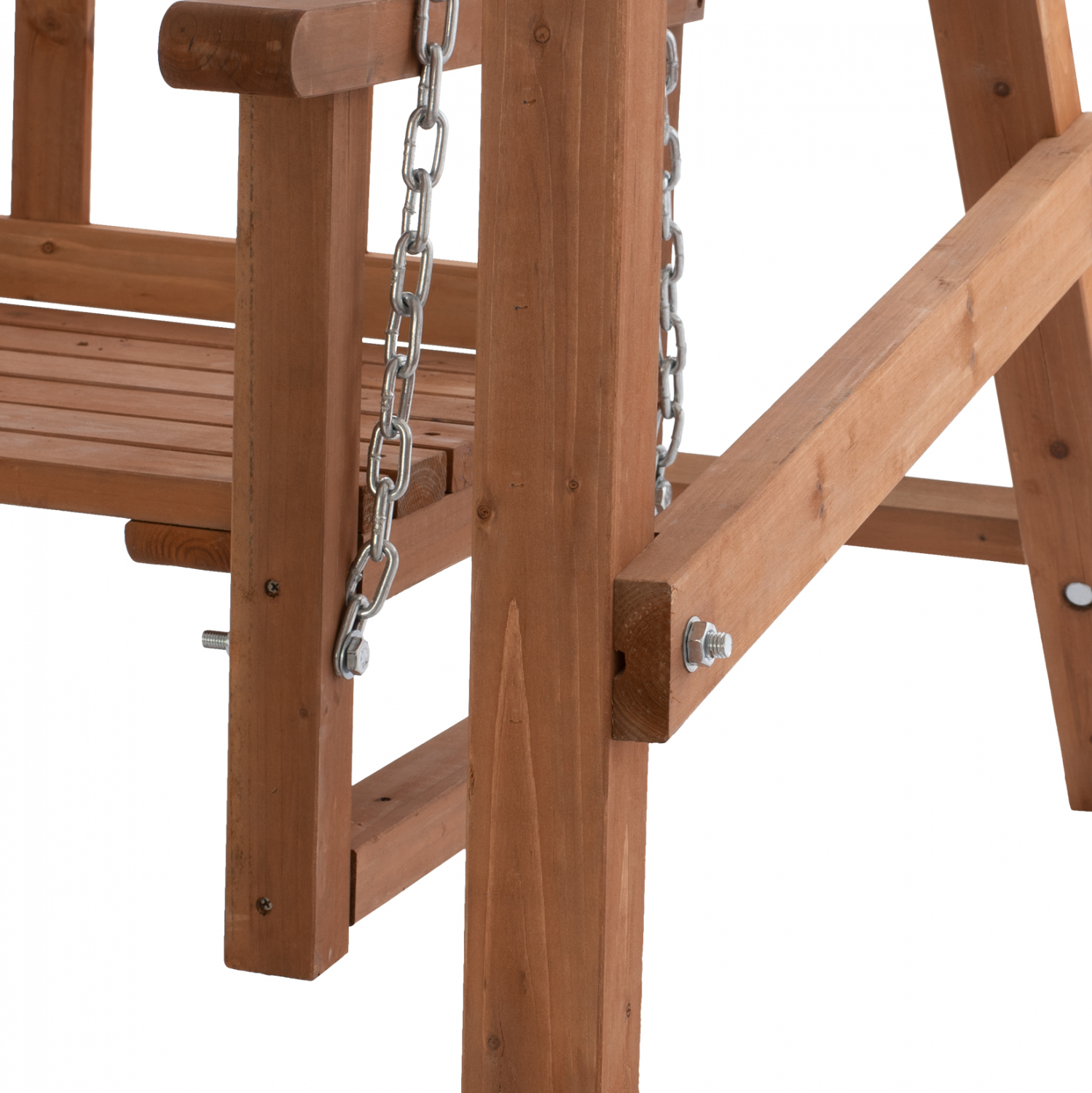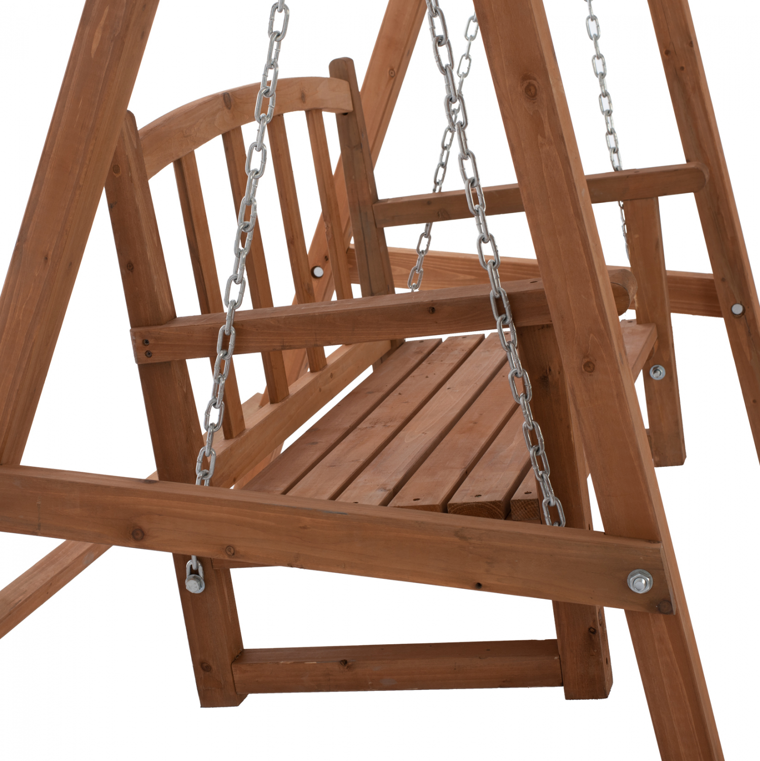 Λιτή και κομψή διθέσια κούνια, σε καρυδί απόχρωση.
