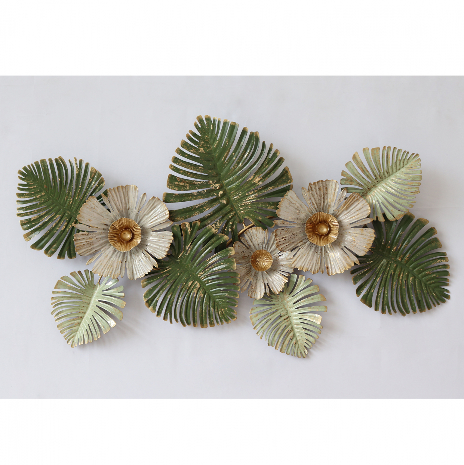 Μεταλλικό διακοσμητικό τοίχου σε πράσινη και εκρού απόχρωση με χρυσές λεπτομέρειες.