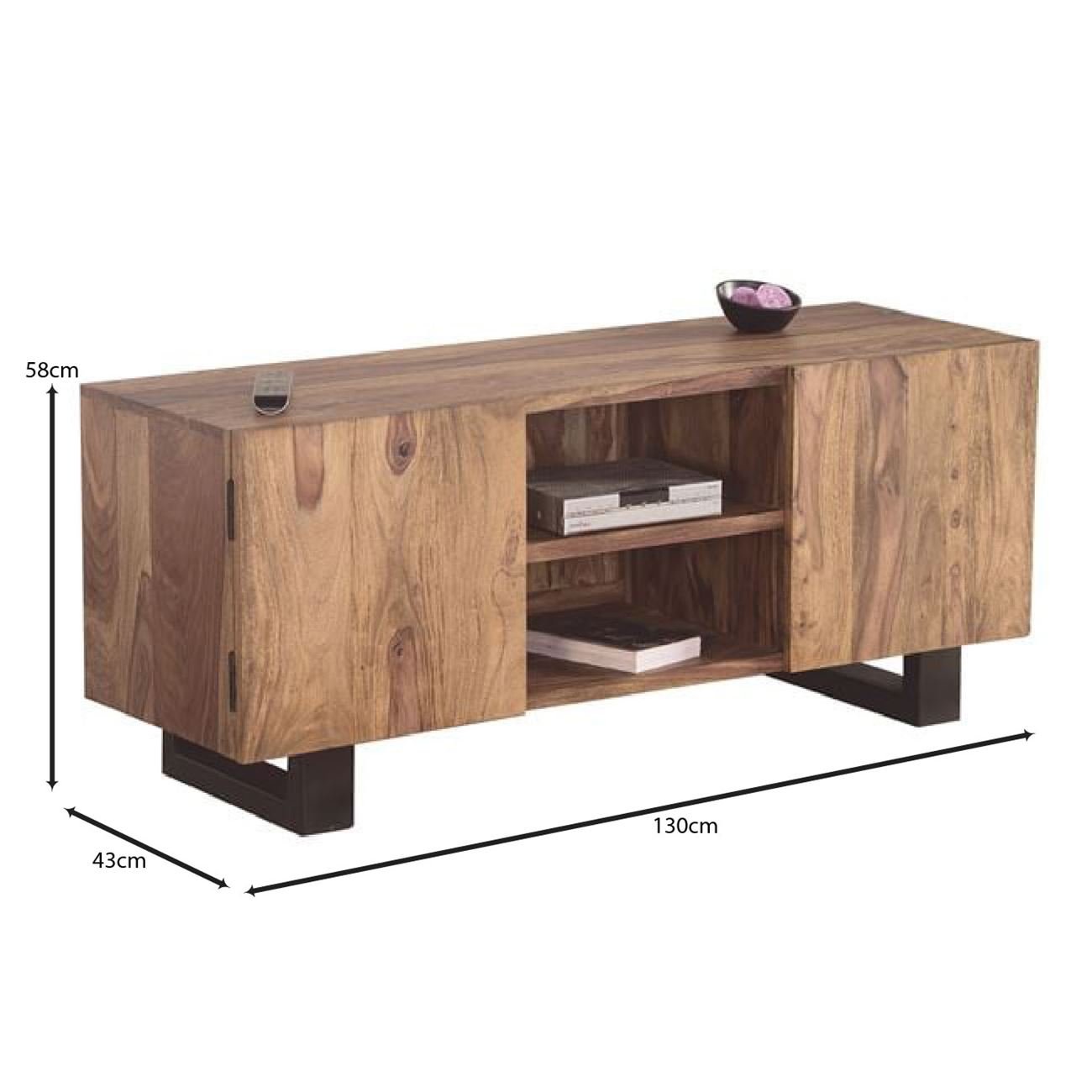 NELSON ‘Επιπλο TV Μέταλλο Βαφή Μαύρο, Ξύλο Ακακία Φυσικό