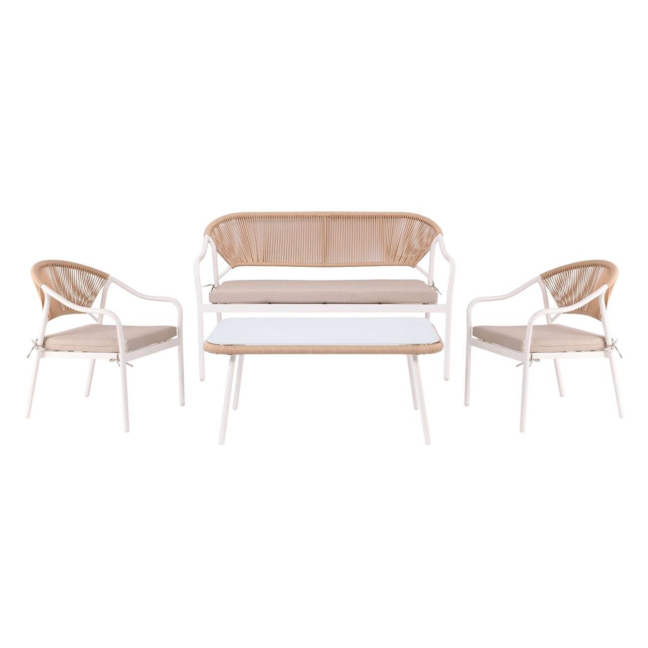 Ε257,1 PALERMO Set (Τραπ+2θέσ+2Πολ) Μεταλ.Άσπρο/Wicker Φυσικό/Μαξ.Μπεζ