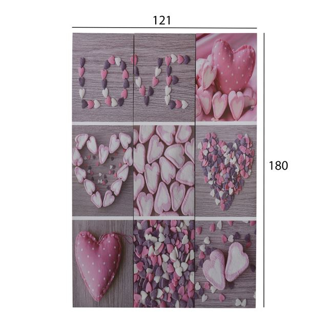 Διακοσμητικό παραβάν διπλής όψης από τυπωμένο καμβά, με τρία φύλλα σε σχέδιο Love.