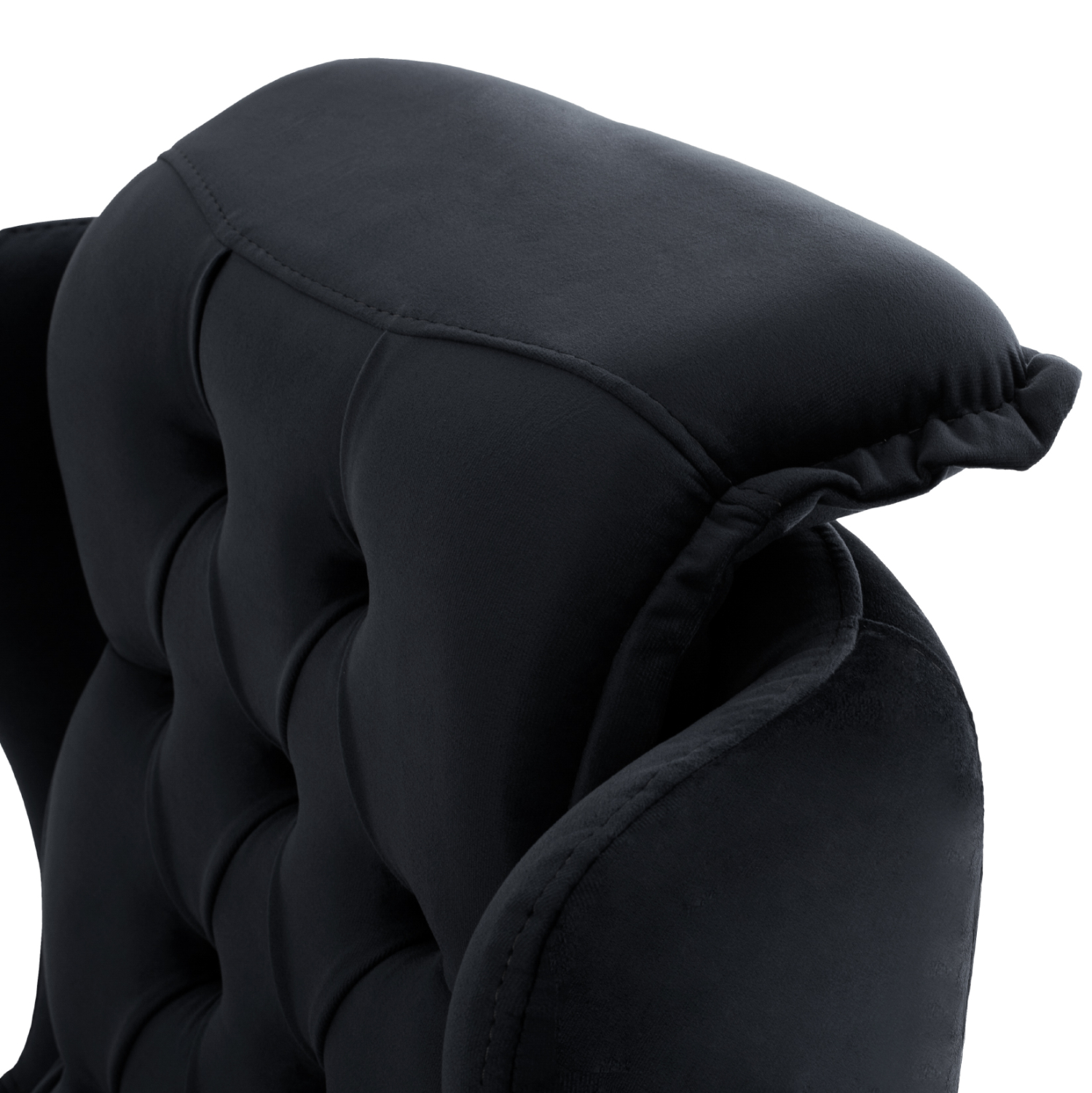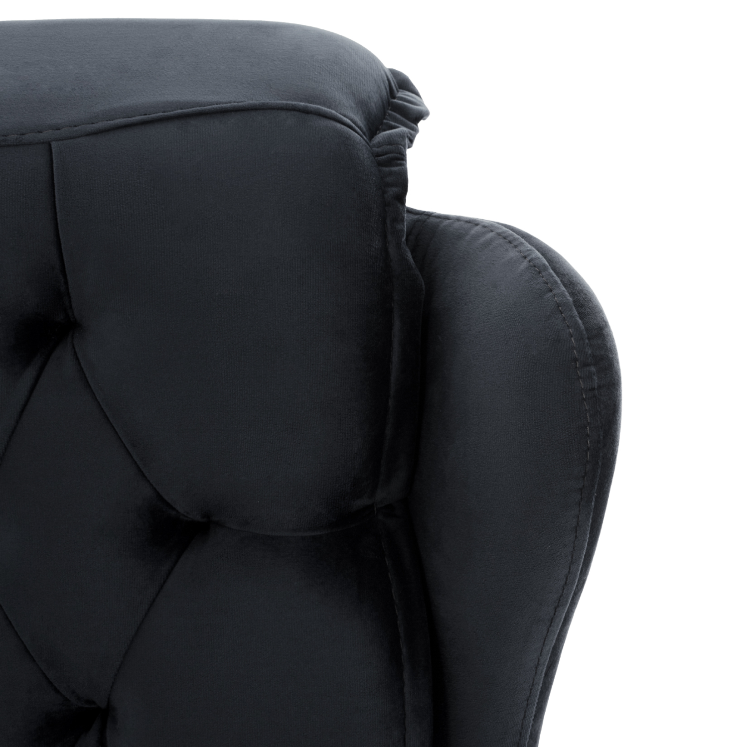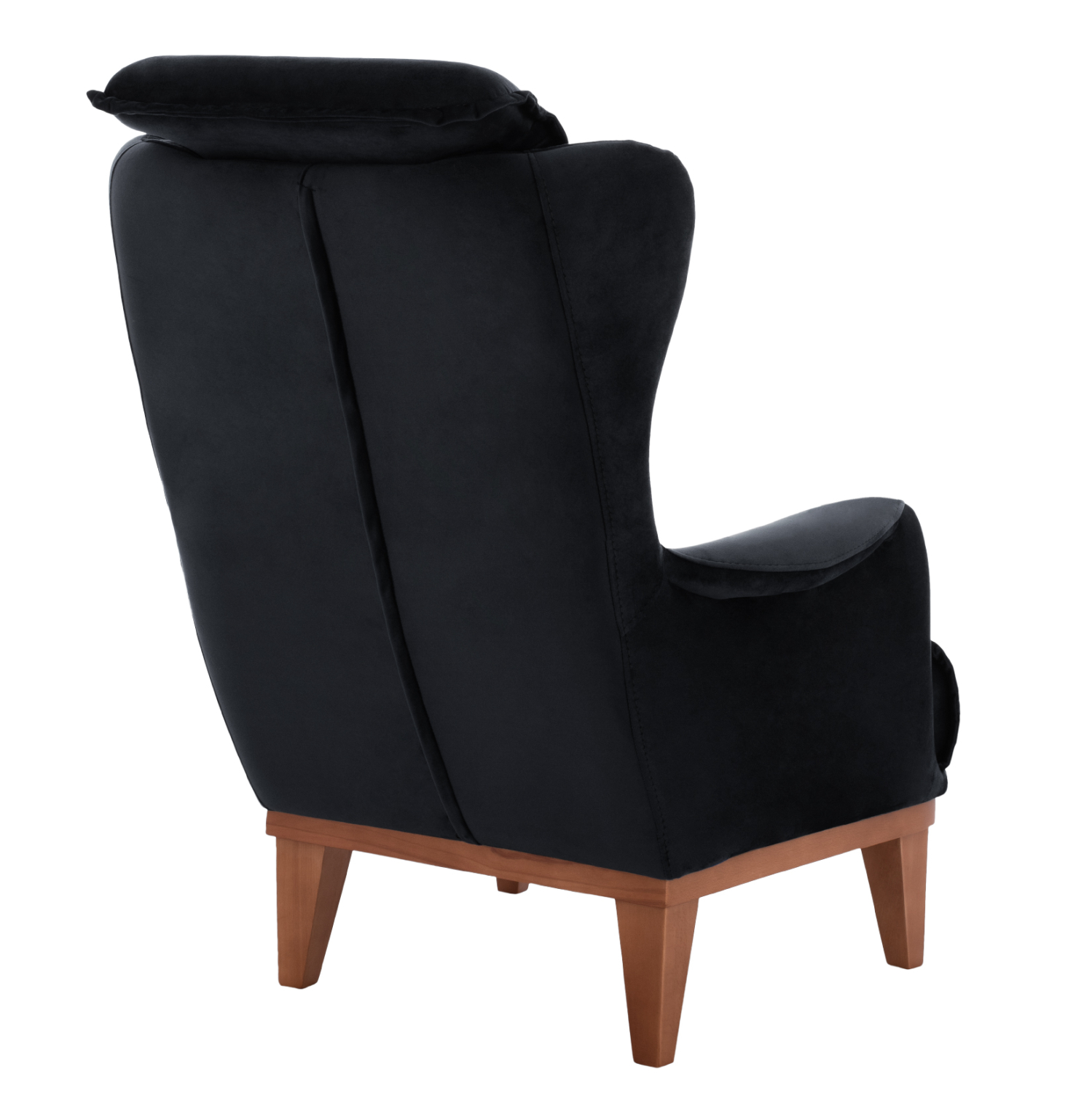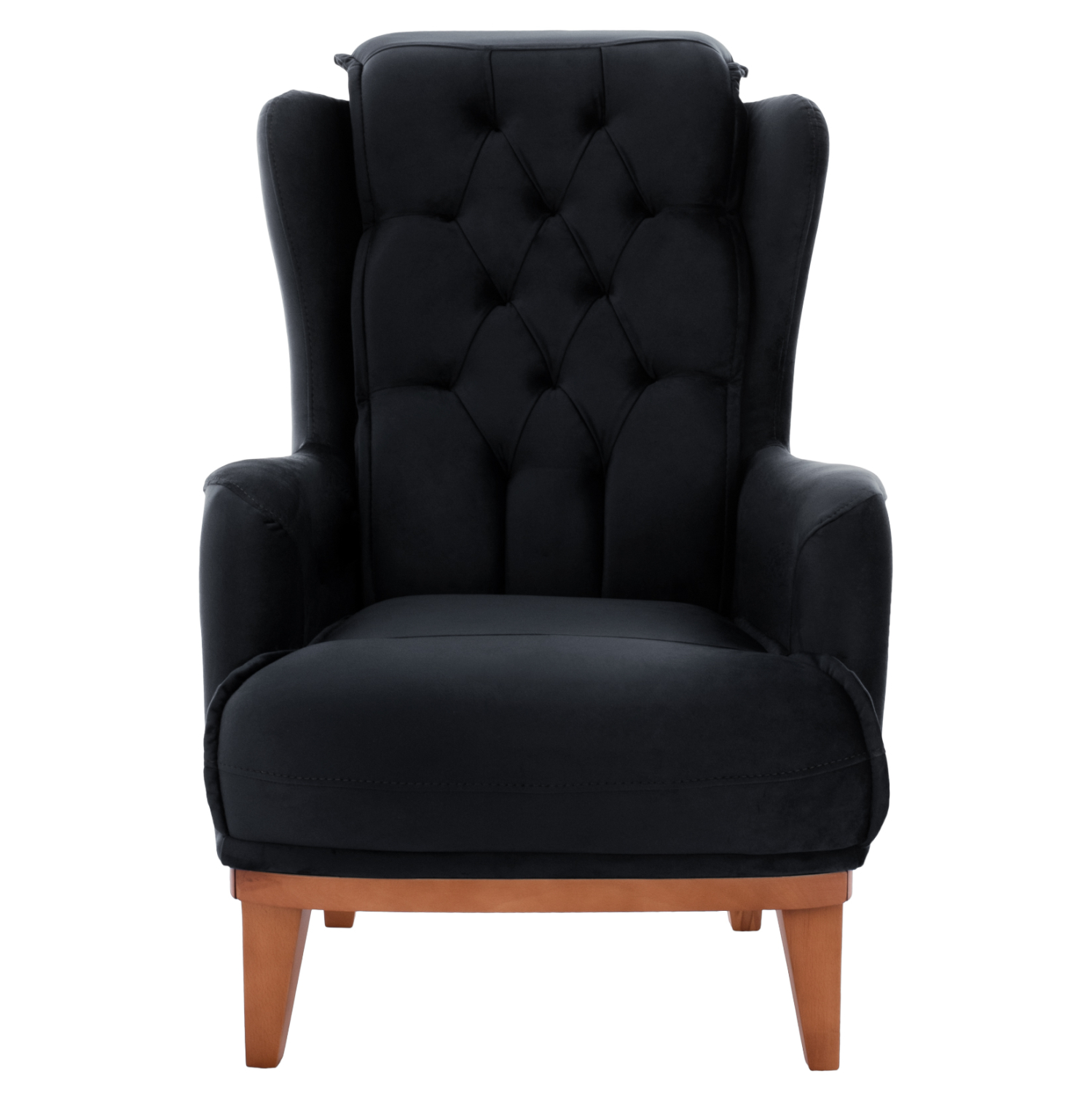 Σας παρουσιάζουμε την μπερζέρα BENNINGTON, σε ΜΑΥΡΟ χρώμα με ξύλινα πόδια σε φυσική απόχρωση. Η επένδυση της πλάτης έχει γίνει με τεχνοτροπία καπιτονέ που προσδίδει ιδιαίτερη ομορφιά στην μπερζέρα σε συνδυασμό, φυσικά, με την βελούδινη επένδυση.