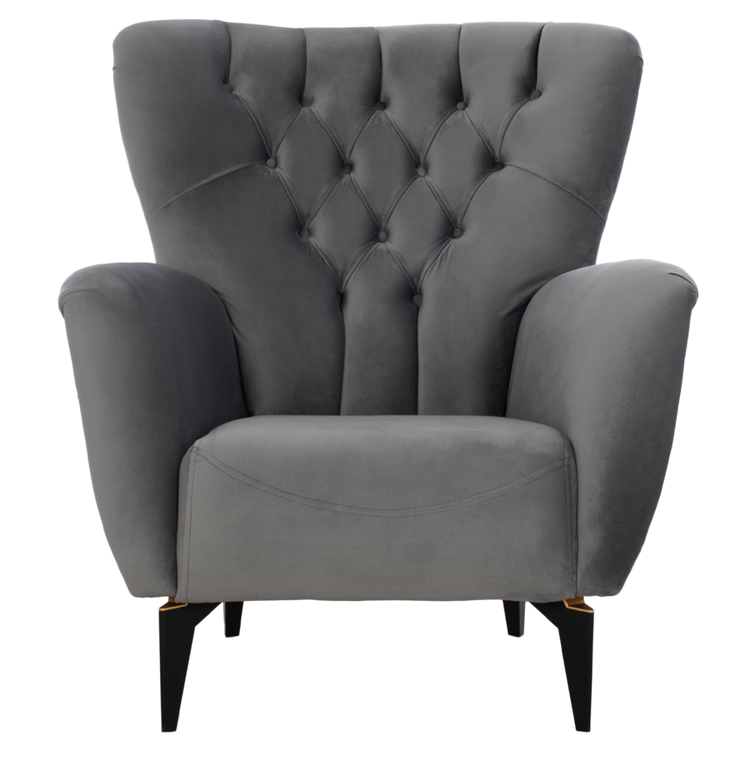 Αυτή είναι η μπερζέρα ΗΜ9217.20 σε ΓΚΡΙ χρώμα και πόδια πολυπροπυλενίου σε μαύρο χρώμα με χρυσές λεπτομέρειες. Το χαρακτηριστικό που κάνει αυτή την πολυθρόνα να ξεχωρίζει είναι ότι η τεχνοτροπία της είναι σε στυλ Chesterfield, πράγμα που δίνει την αίσθηση κύρους και πολυτέλειας οπουδήποτε κι αν χρησιμοποιηθεί. Το κύριο χαρακτηριστικό αυτής της μπερζέρας, είναι η επένδυση με βελούδινο ύφασμα, το οποίο στην πλάτη είναι σε βαθιά καπιτονέ τεχνοτροπία, υπηρετώντας το στυλ Chesterfield.