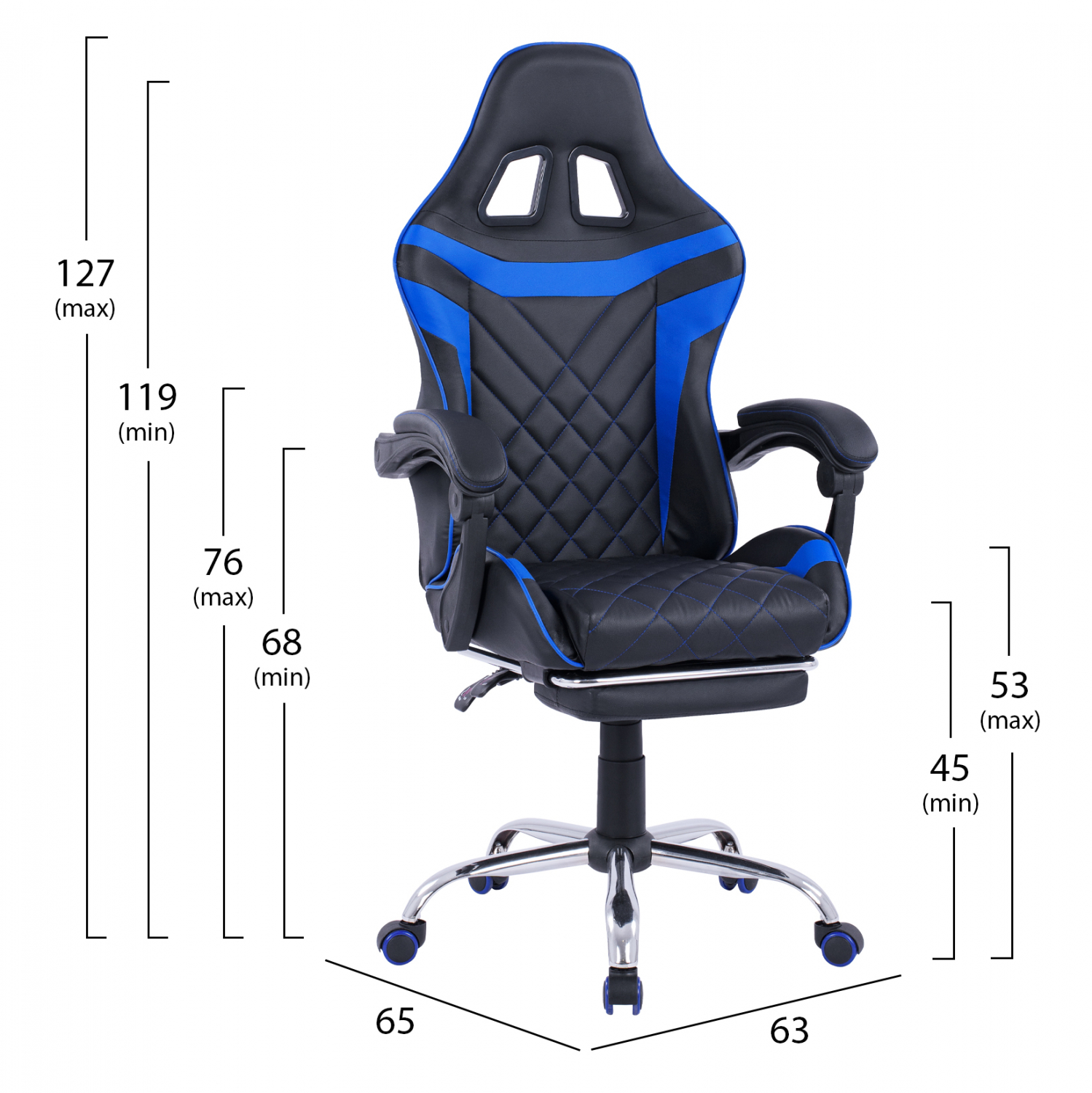 Καρεκλα γραφείου gaming, από PU υψηλής ποιότητας σε μαύρο μπλε χρώμα 63x65x127 εκ.