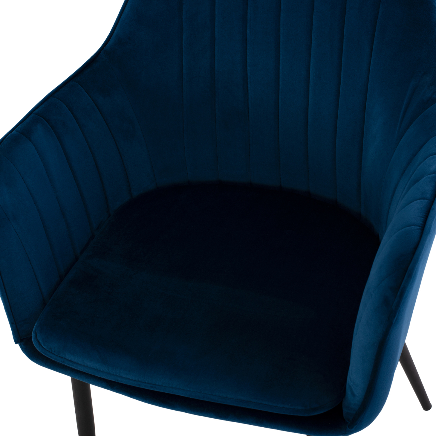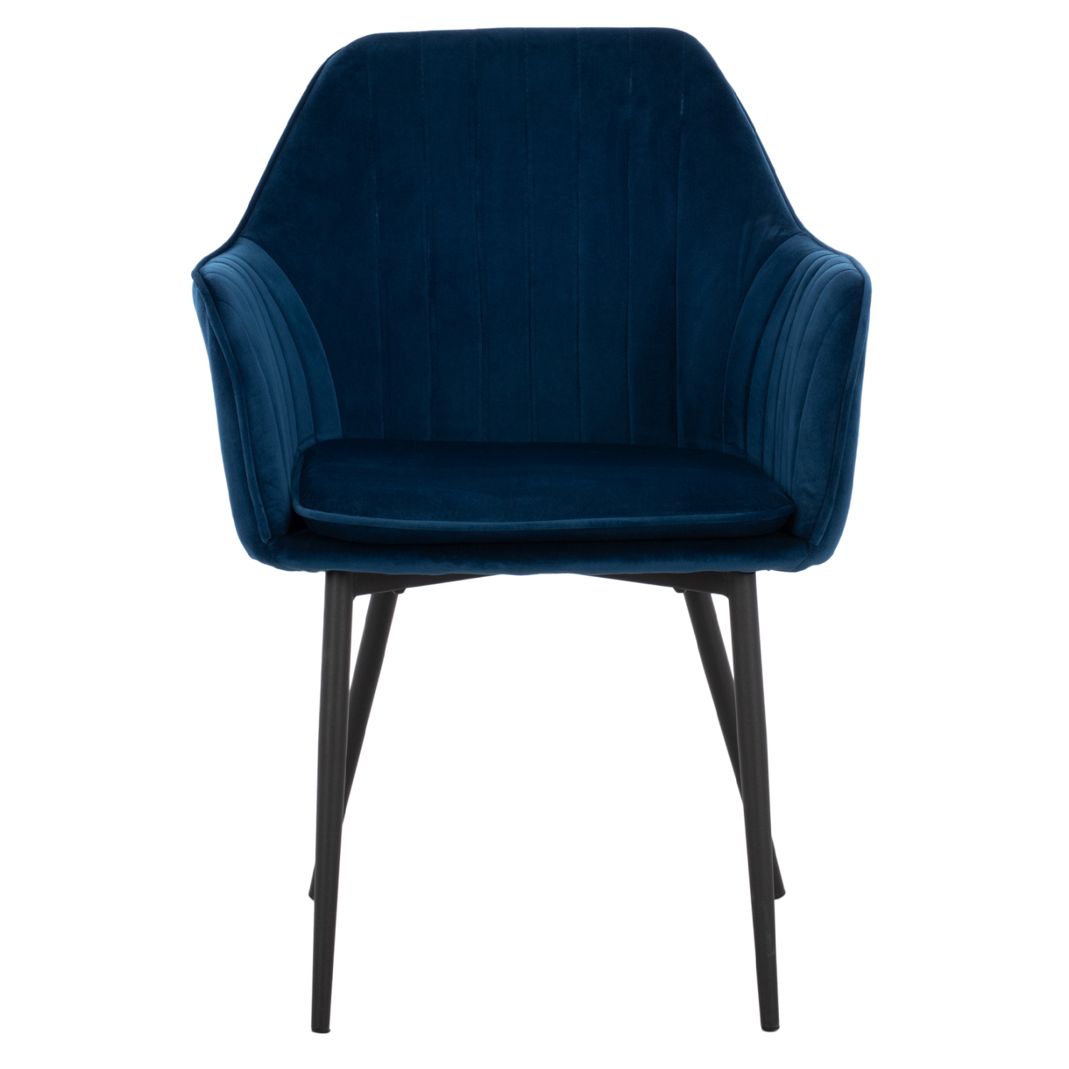 Πολυθρόνα από βελούδινο ύφασμα σε μπλε, με μεταλλικό σκελετό σε μαύρη απόχρωση 58x55x82 εκ.