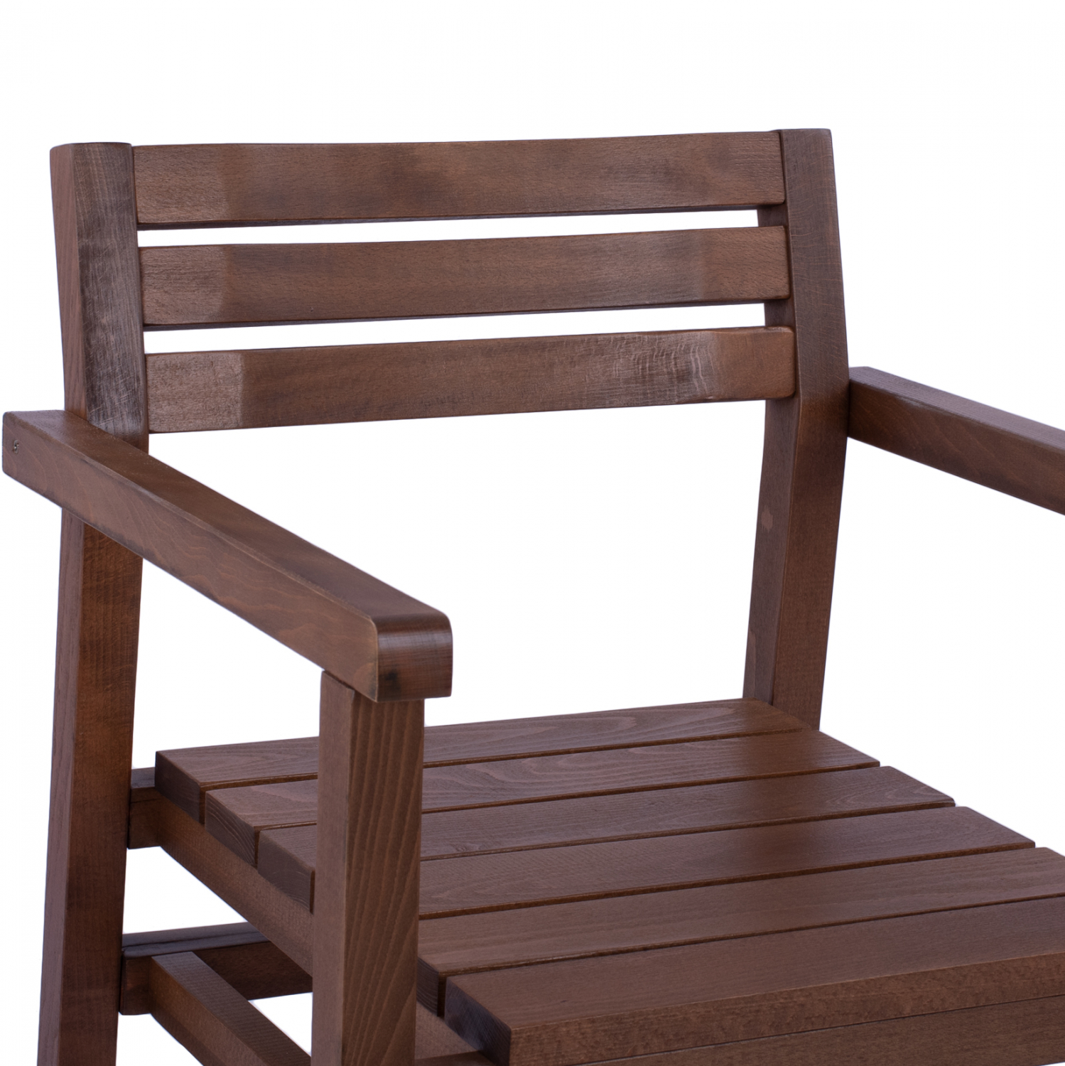 Πολυθρόνα εξωτερικού χώρου από ενισχυμένο σκελετό από μασίφ ξύλο φουρνιστής οξιάς.