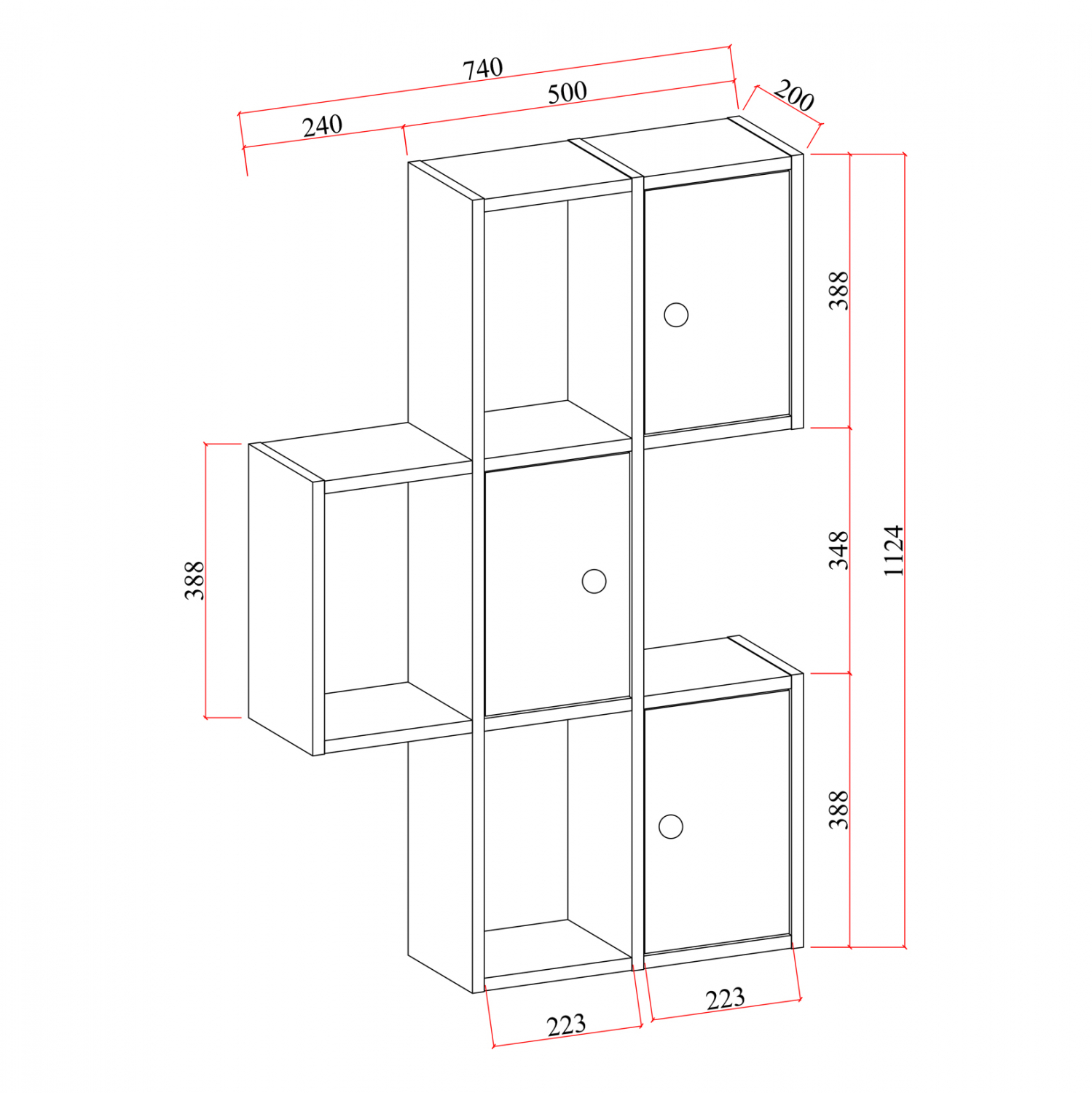 Διαθέτει 3 ανοιχτά τμήματα, και 3 κλειστά ντουλάπια, όπου είναι ιδανικά για να τοποθετείτε αντικείμενα όπως τα αγαπημένα σας βιβλία, συλλεκτικά αντικείμενα, διακοσμητικά, φωτογραφίες,γλαστράκια, κλπ.