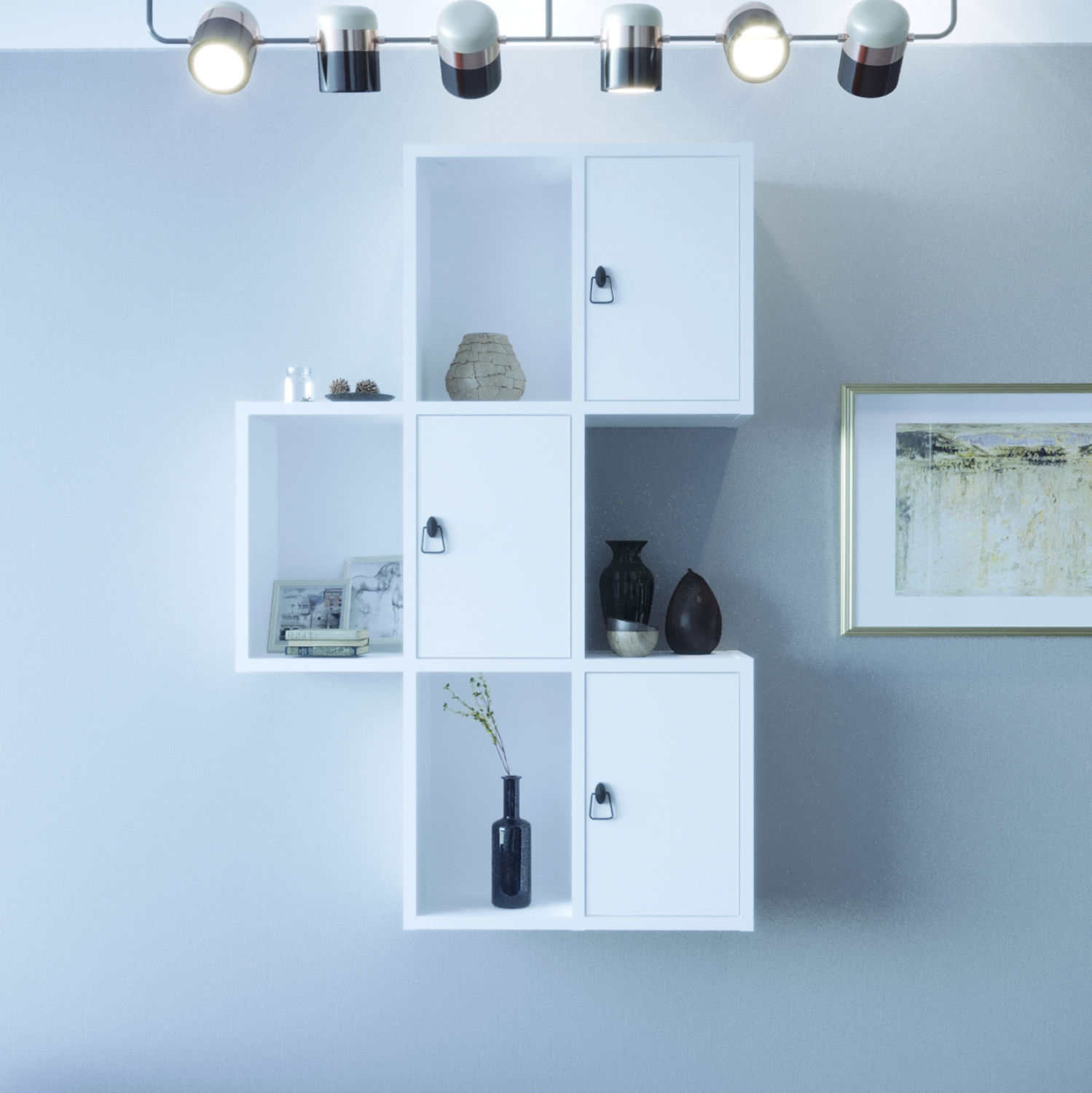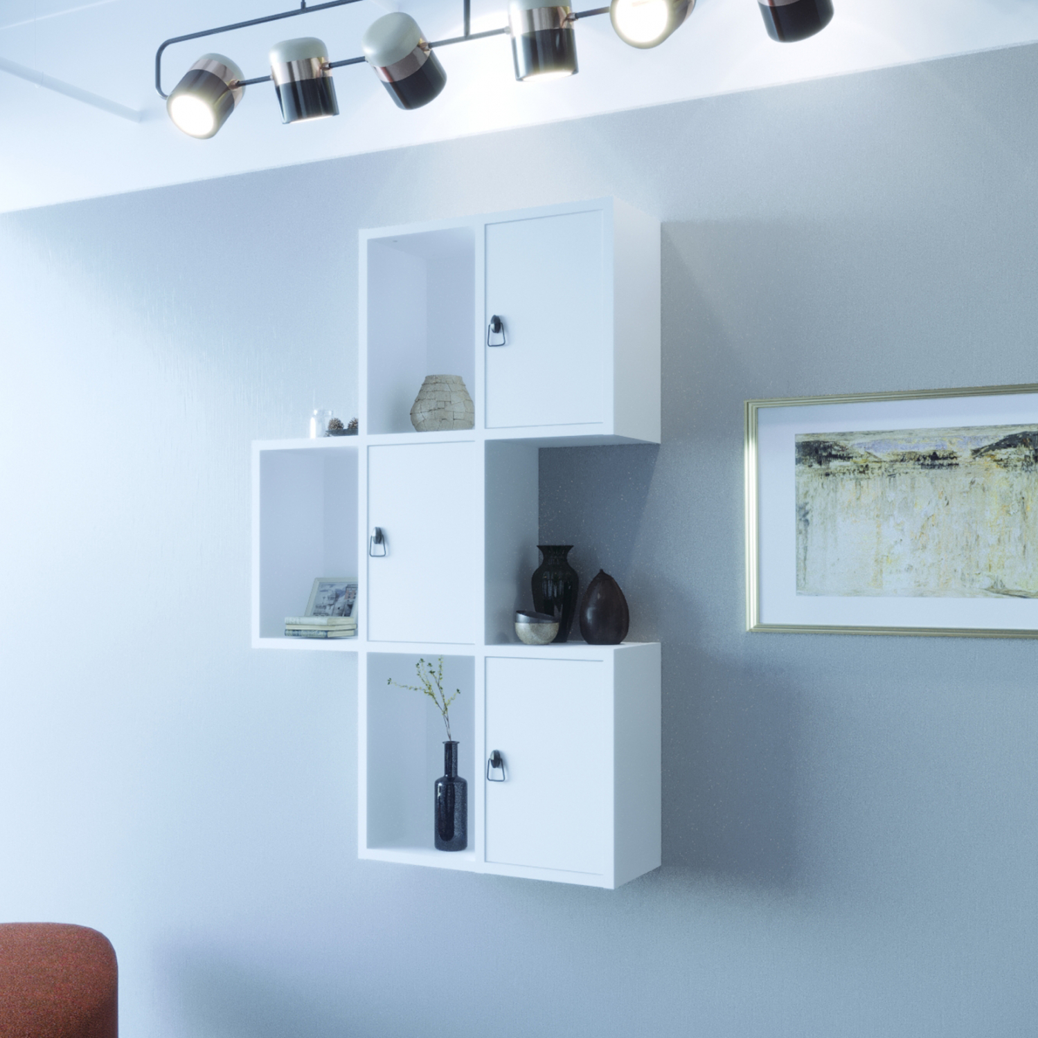 Ραφιέρα τοίχου με ντουλάπια σε λευκή απόχρωση.