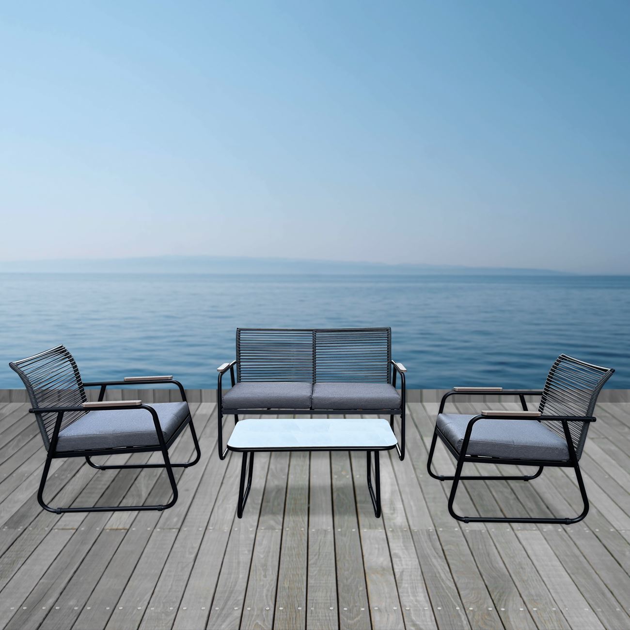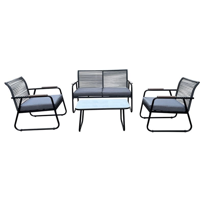 Ε6873,1 ROCCO Set (4τεμ) Μεταλ.Μαύρο/Rope Wicker Γκρι/Μαξιλ.Σκ.Γκρι