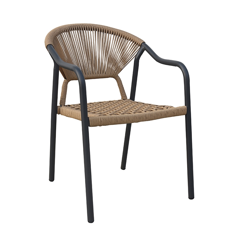 Sasta πολυθρόνα αλουμινίου με σκελετό βαφής σε χρώμα dark grey με μοντέρνο design.Η πλάτη και το κάθισμα είναι με επένδυση από συνθετικό σχοινί σε χρώμα μπέζ. Με στρογγυλεμένη πλάτη για μεγαλύτερη άνεση. Είναι στοιβαζόμενη για εύκολη αποθήκευση και κατάλληλη για εξωτερική χρήση.