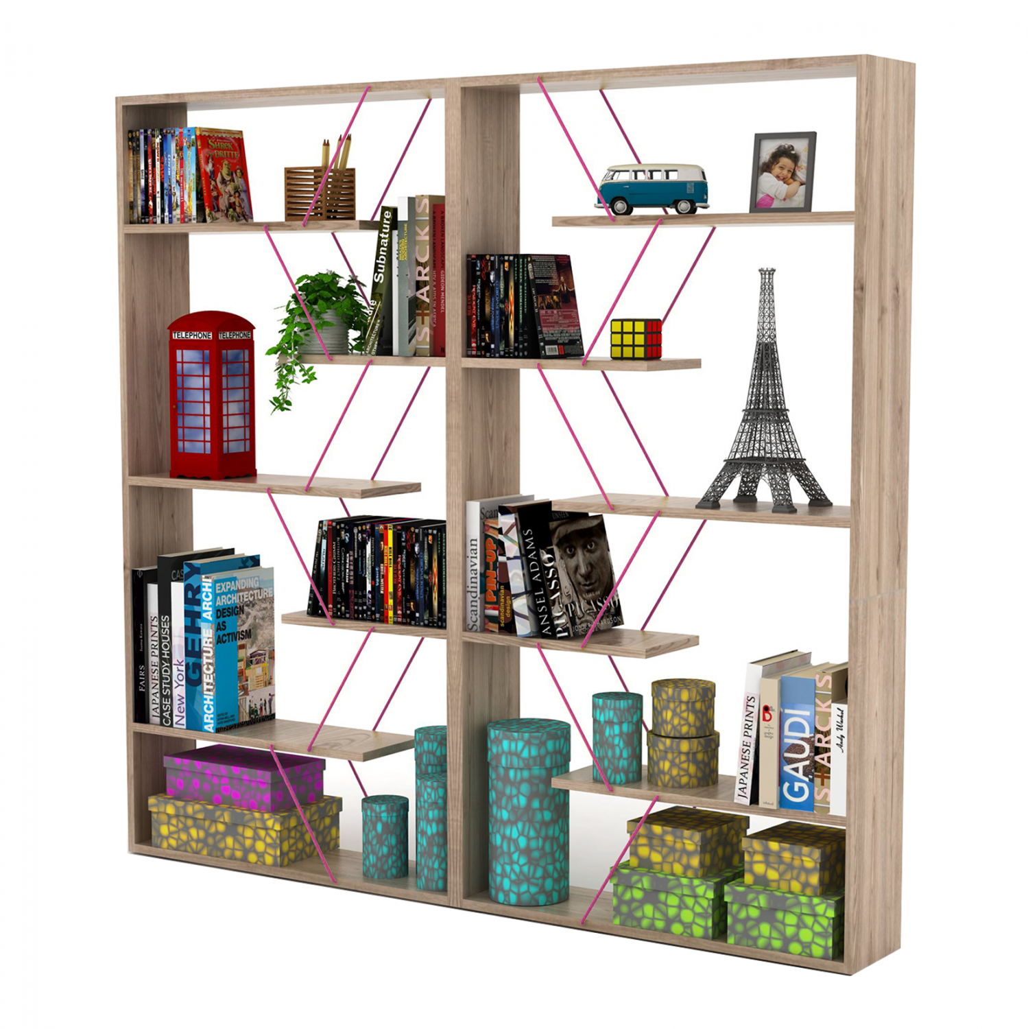 Σετ βιβλιοθήκη Tars σε sonama απόχρωση με φούξια λεπτομέρειες.