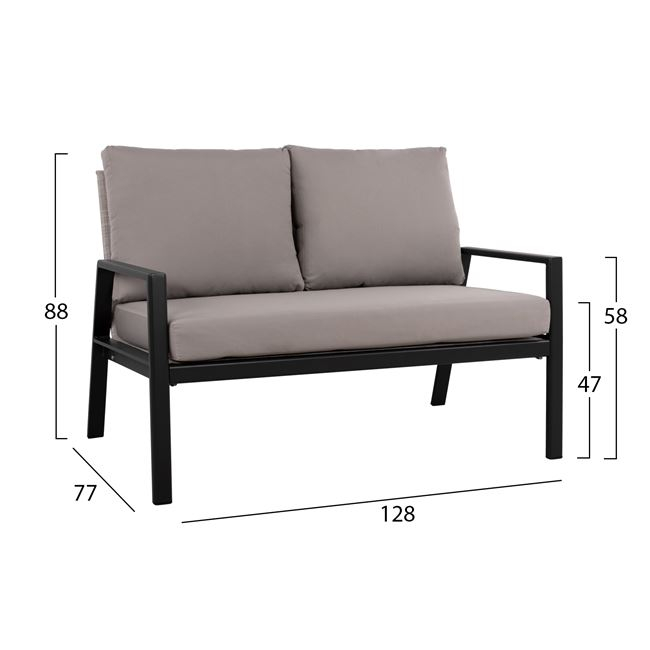 ΣΕΤ 4ΤΜΧ ΣΑΛΟΝΙ ΑΛΟΥΜΙΝΙΟΥ ΑΝΘΡΑΚΙ-ΓΚΡΙ HM5128.12 ΜΕ ΓΚΡΙ TEXTILENE