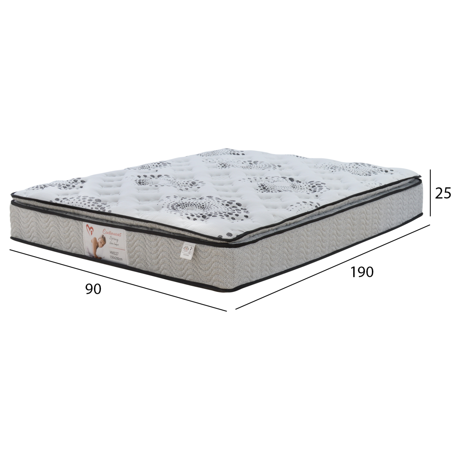 Στρώμα με συνεχόμενα ελατήρια Bonnell και ενσωματωμένο ανώστρωμα 7 εκ. Διαστάσεις: 90Χ190Χ25Υ εκ