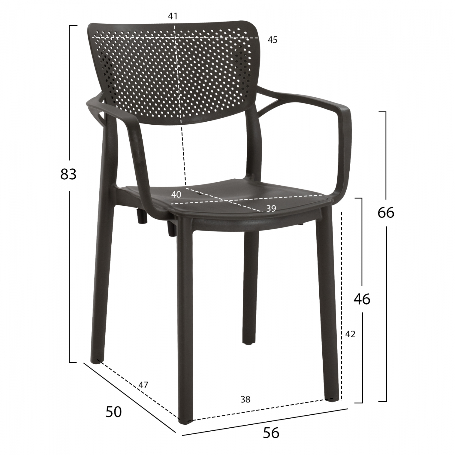 Έξι μοντέρνες πολυθρόνες εξωτερικού χώρου κατασκευασμένες πολυπροπυλένιο σε ανθρακί απόχρωση.