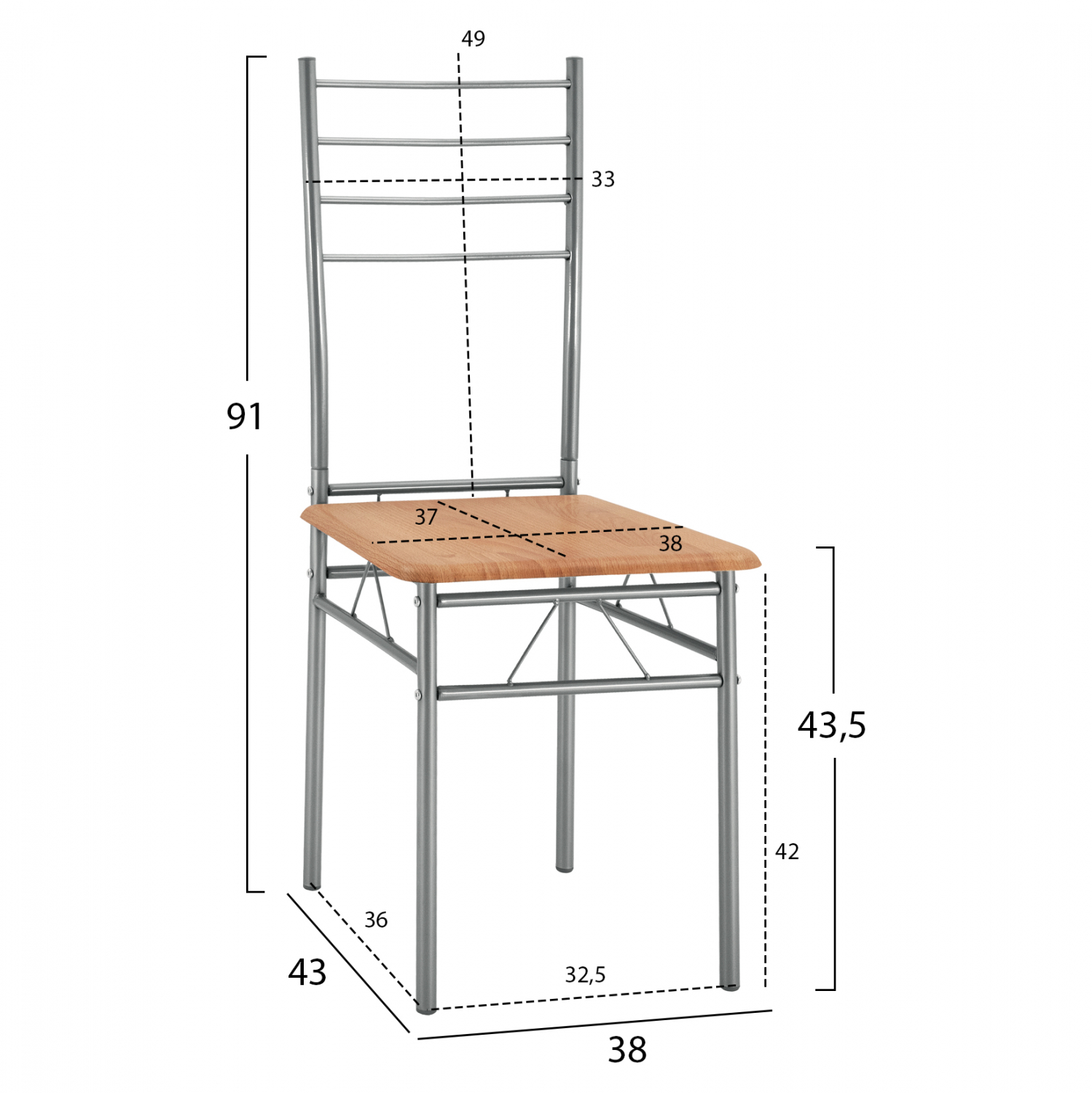 Διαστάσεις καρέκλας: 38x43x91Υ εκ.