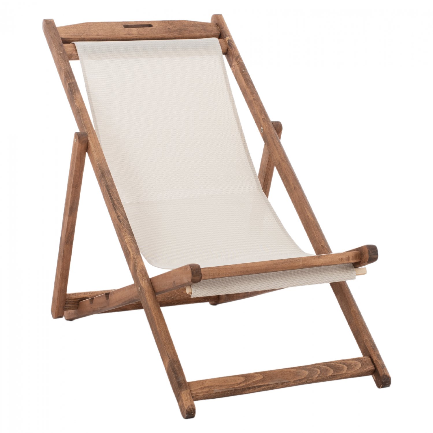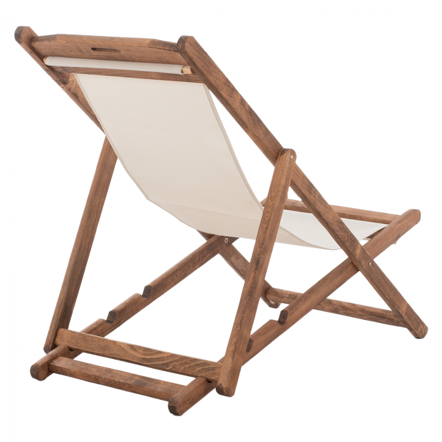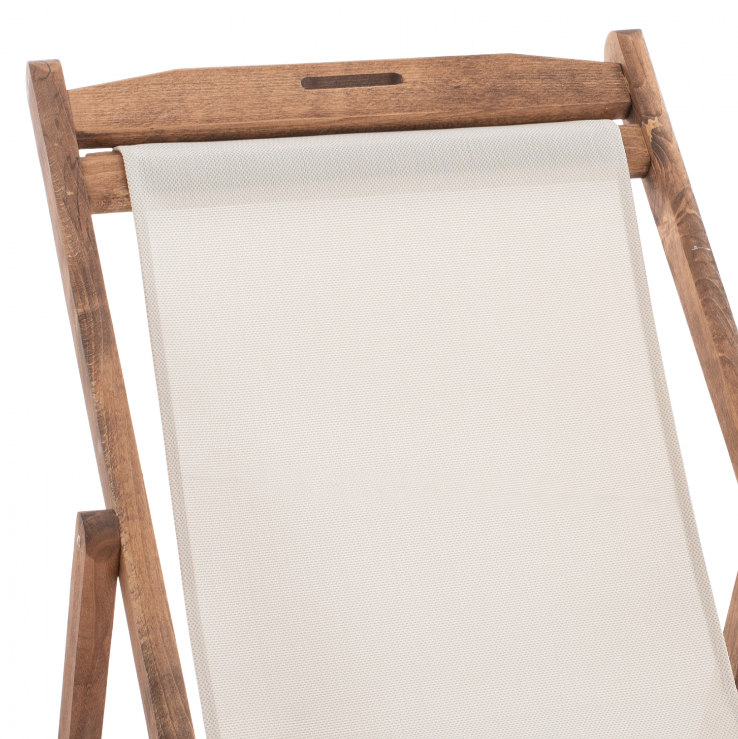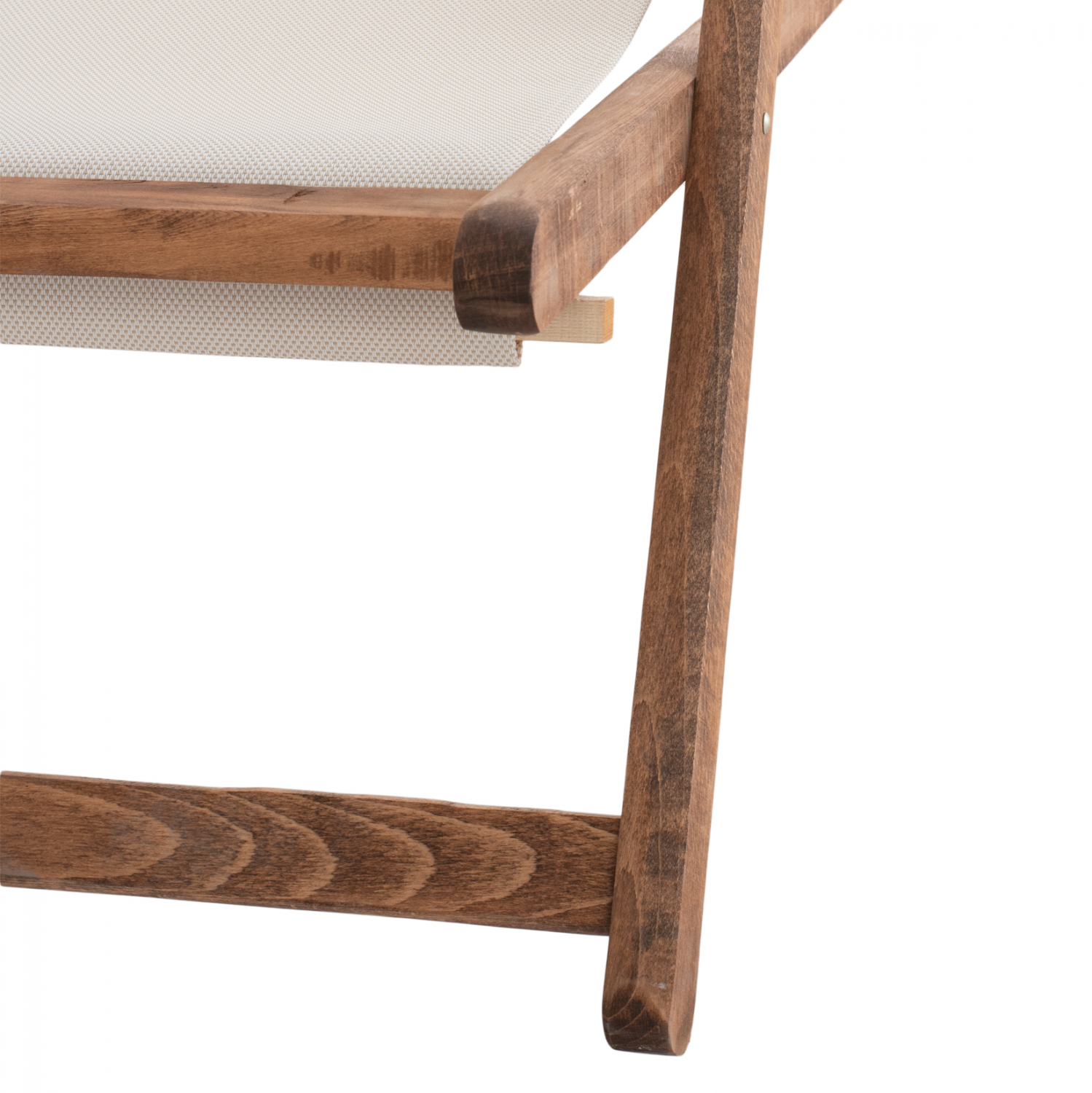 Σεζλόνγκ ΛΗΜΝΟΣ εμποτισμού, 3 θέσεων πτυσσόμενη, χωρίς μπράτσα με ενισχυμένο σκελετό από μασίφ ξύλο φουρνιστής οξιάς σε καρυδί απόχρωση και πανί PVC σε εκρού απόχρωση.