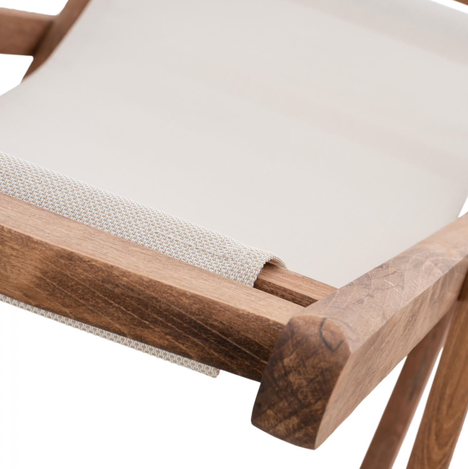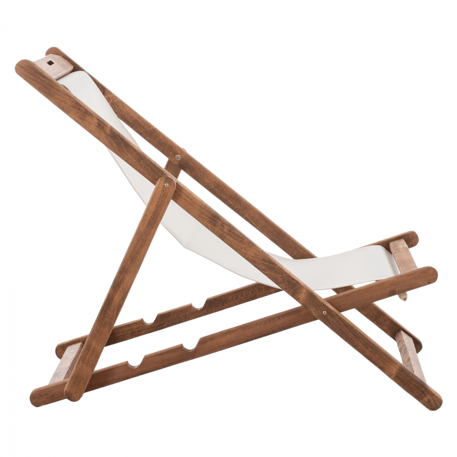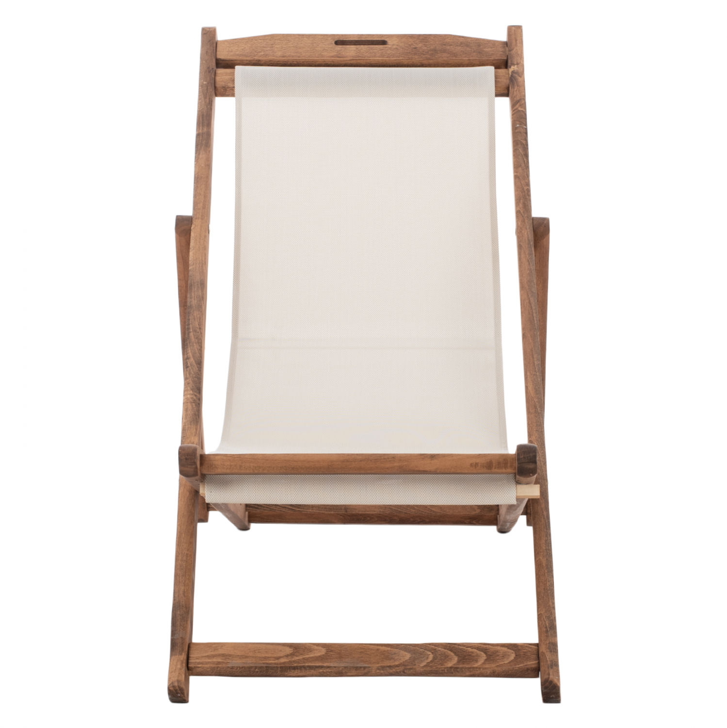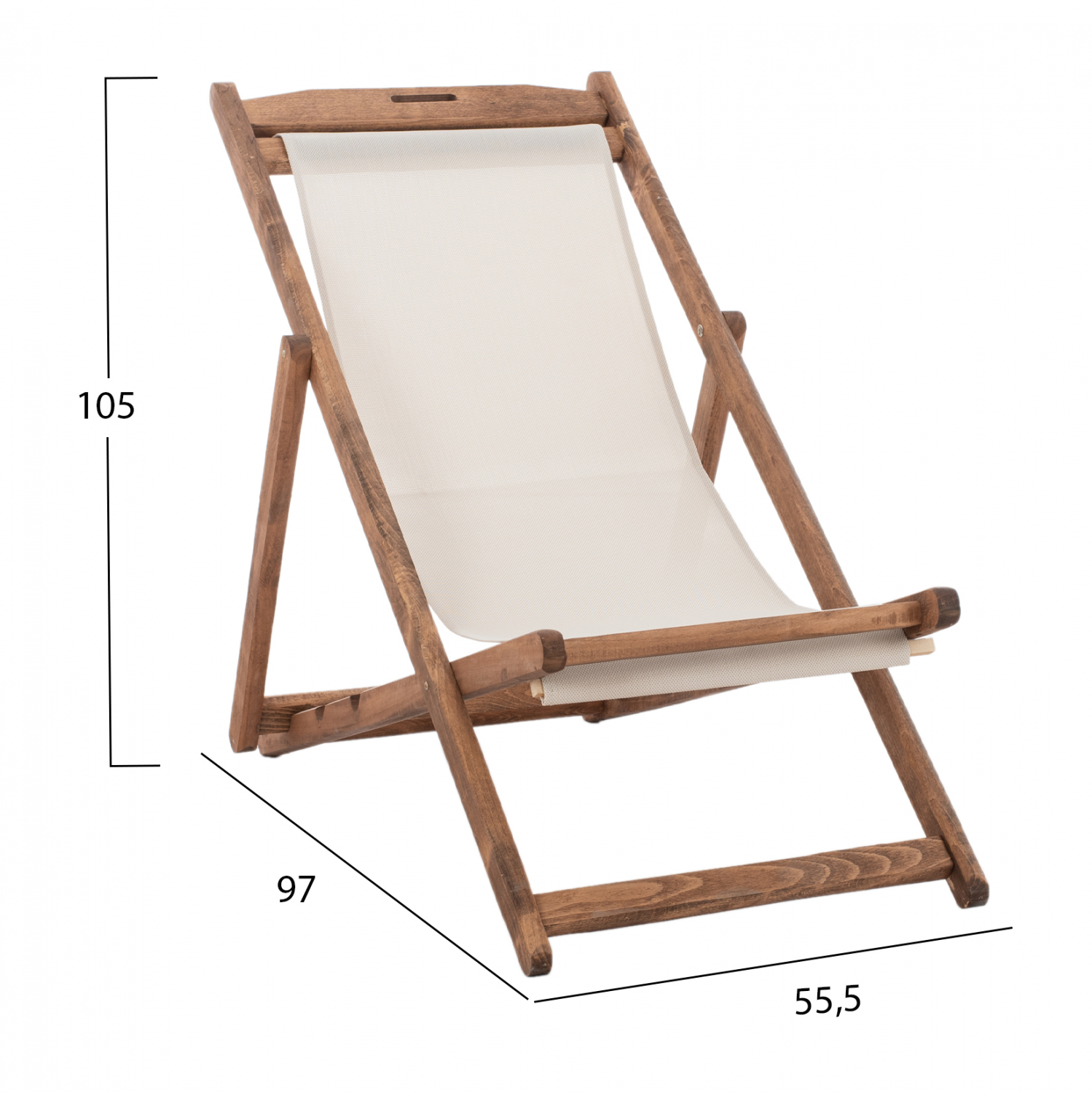 Σεζλόνγκ ΛΗΜΝΟΣ εμποτισμού, 3 θέσεων πτυσσόμενη, χωρίς μπράτσα με ενισχυμένο σκελετό από μασίφ ξύλο φουρνιστής οξιάς σε καρυδί απόχρωση και πανί PVC σε εκρού απόχρωση.