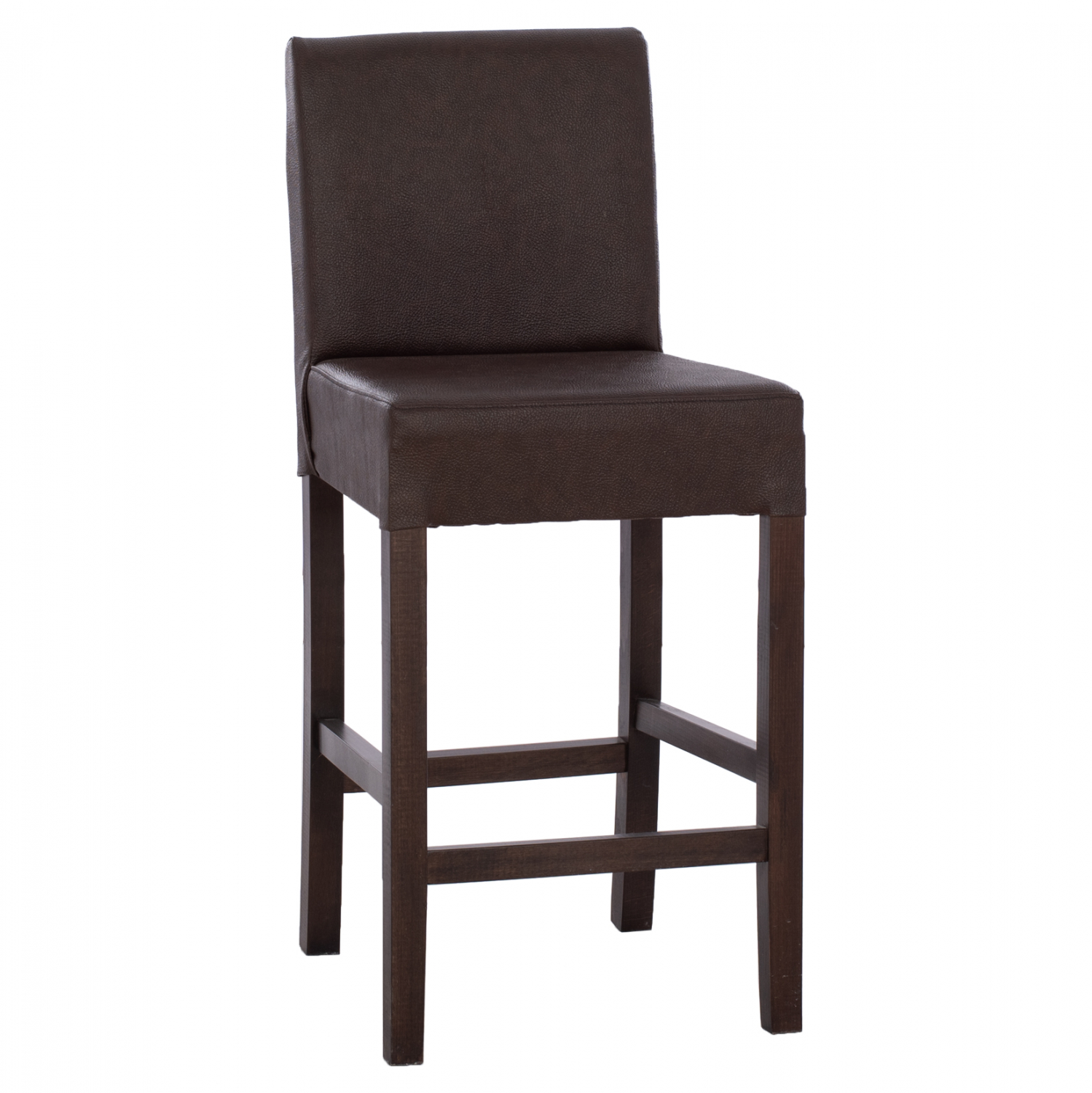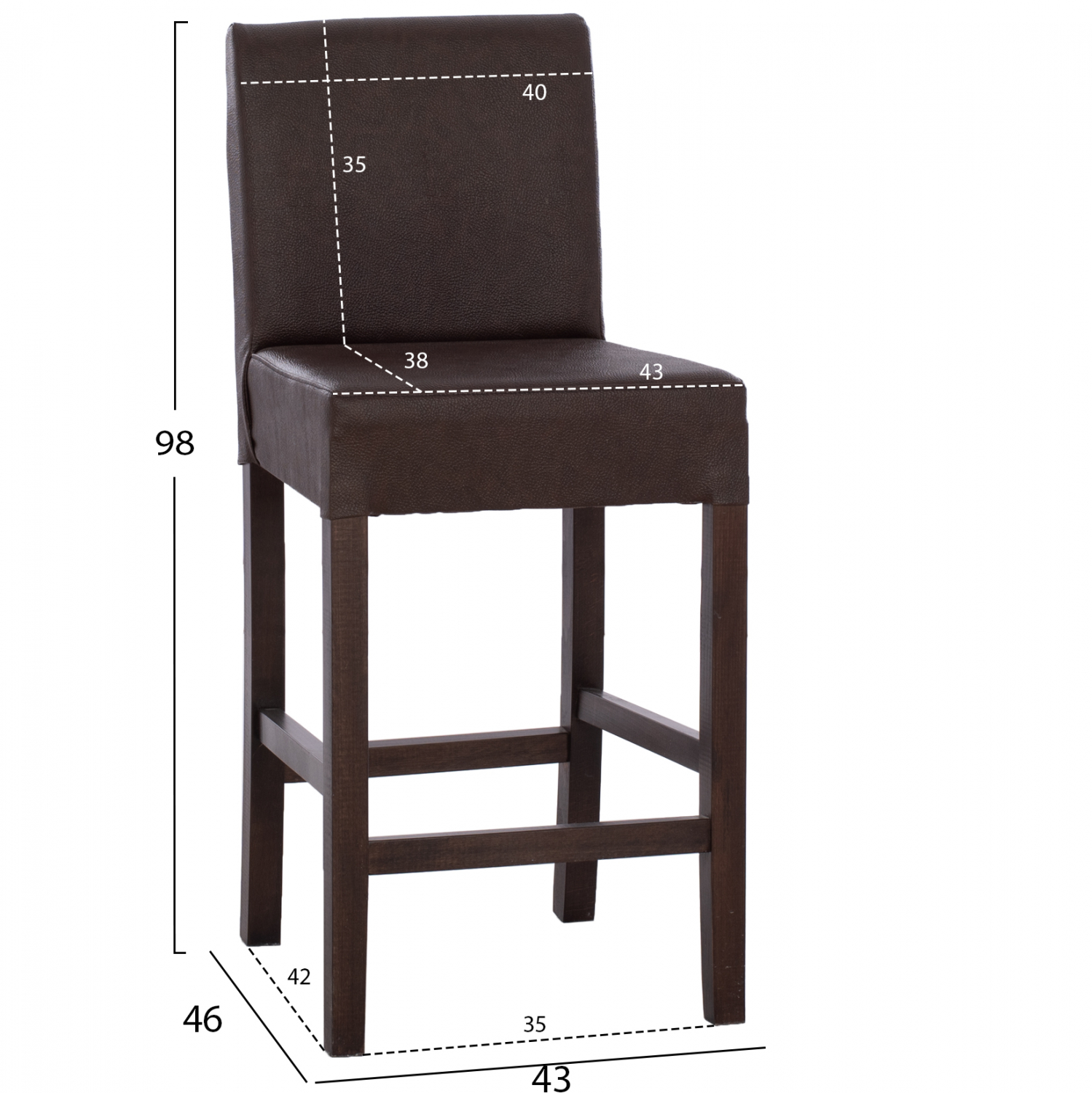 Σκαμπό μπαρ σε απόχρωση καρυδί με καφέ τεχνόδερμα μεσαίου ύψους 43x46x98 εκ.