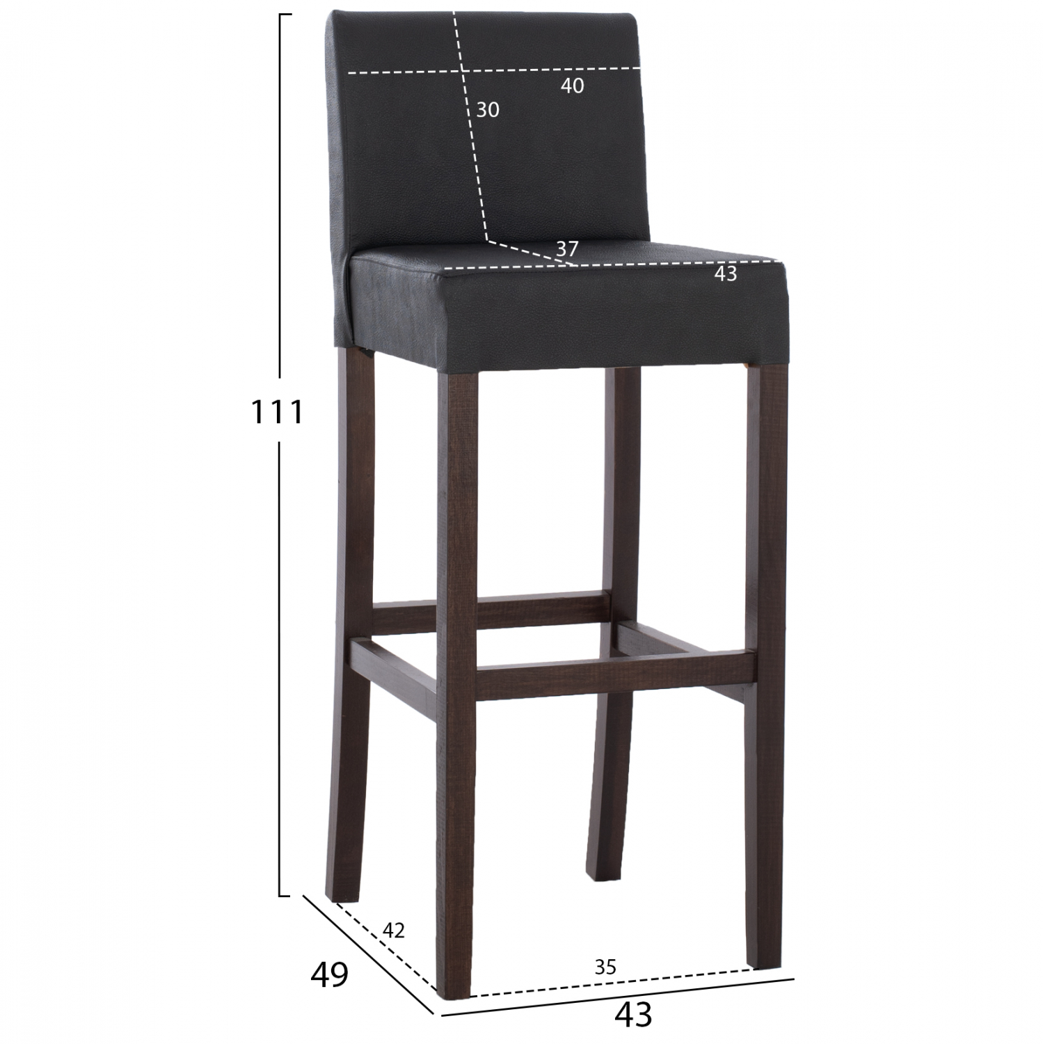 Σκαμπό μπαρ σε απόχρωση καρυδί με μαύρο 43x49x111 εκ.