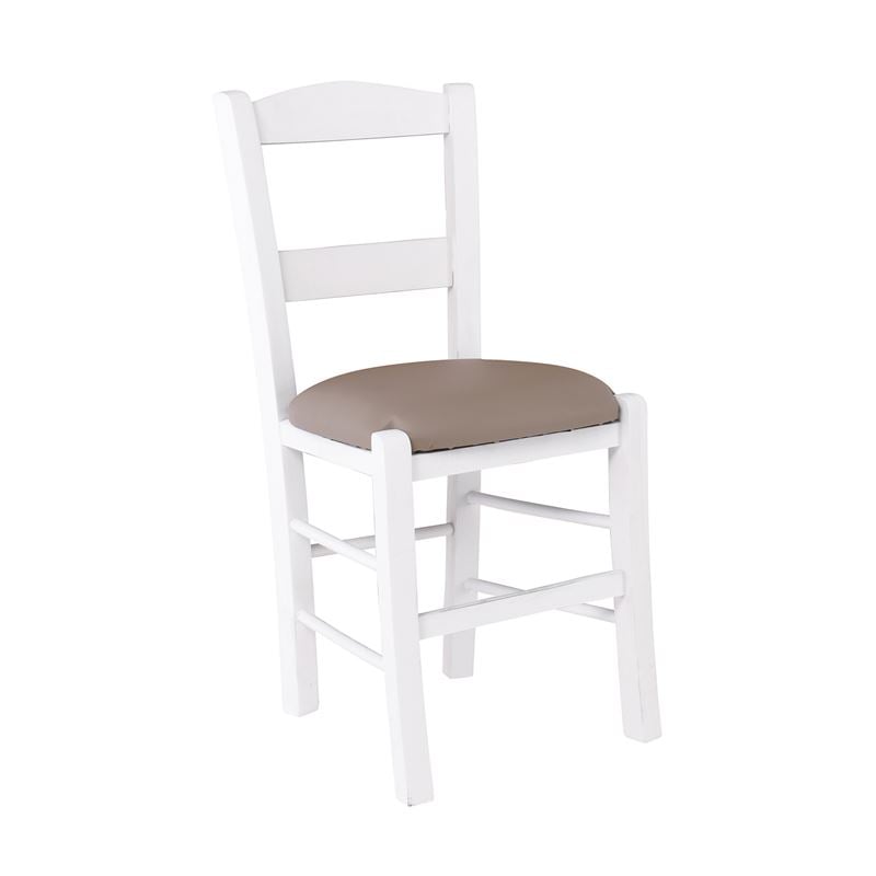 Ρ950,Ε8Τ1 ΣΥΡΟΣ Καρέκλα Ψάθα Εμποτ.Λάκα Άσπρο/Pu Cappuccino