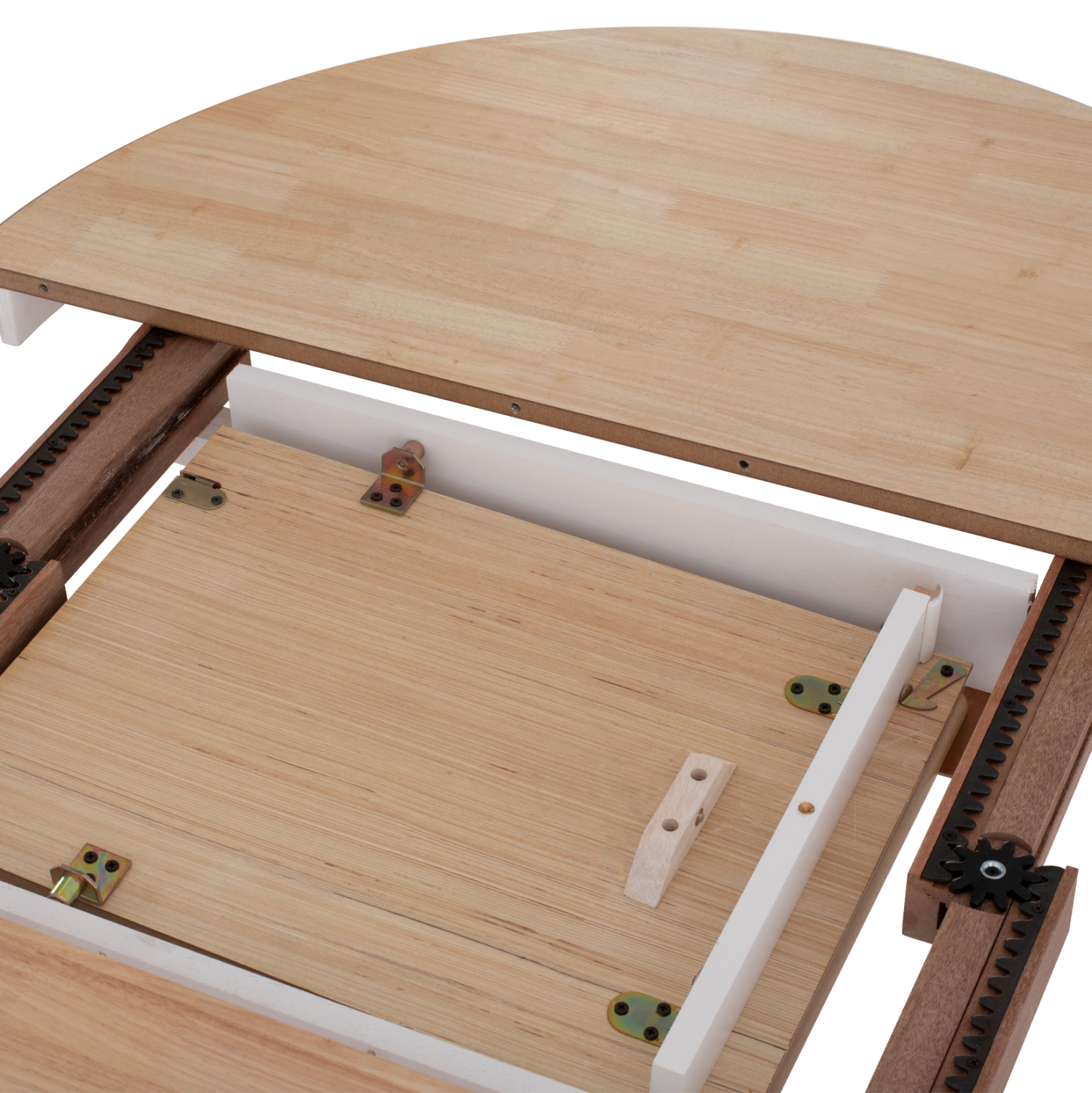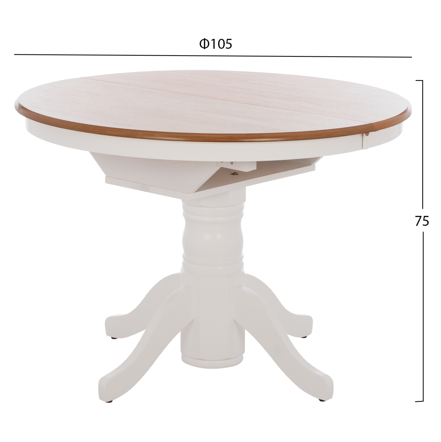 Η συγκεκριμένη ροτόντα σε ΛΕΥΚΟ χρώμα είναι και επεκτεινόμενη αφού με έναν εύχρηστο μηχανισμό μεγαλώνει κατά 40εκ δημιουργώντας ένα μεγάλο οβάλ τραπέζι.