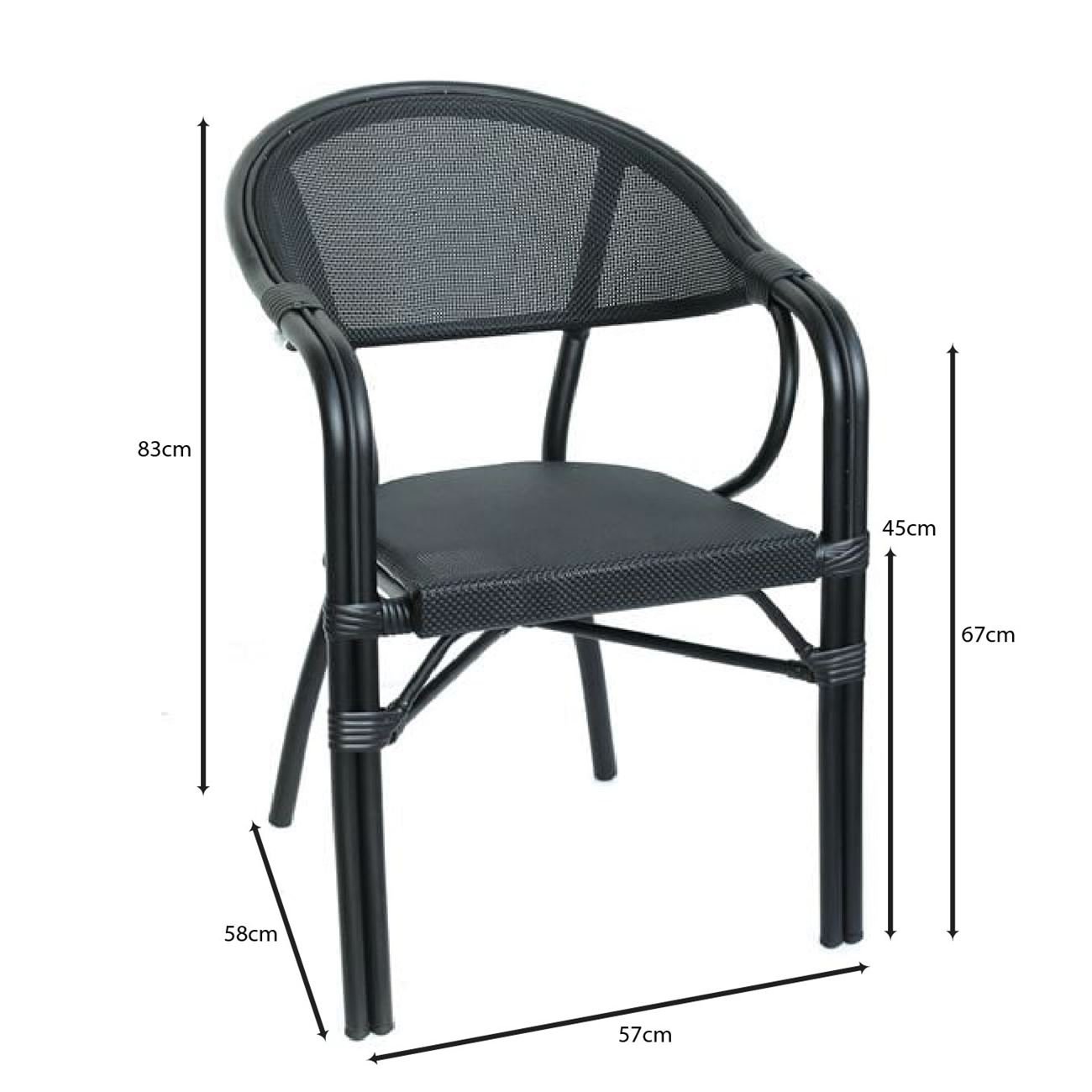 VEGERA Πολυθρόνα Dining Αλουμίνιο Βαφή Μαύρο Textilene Μαύρο, Στοιβαζόμενη
