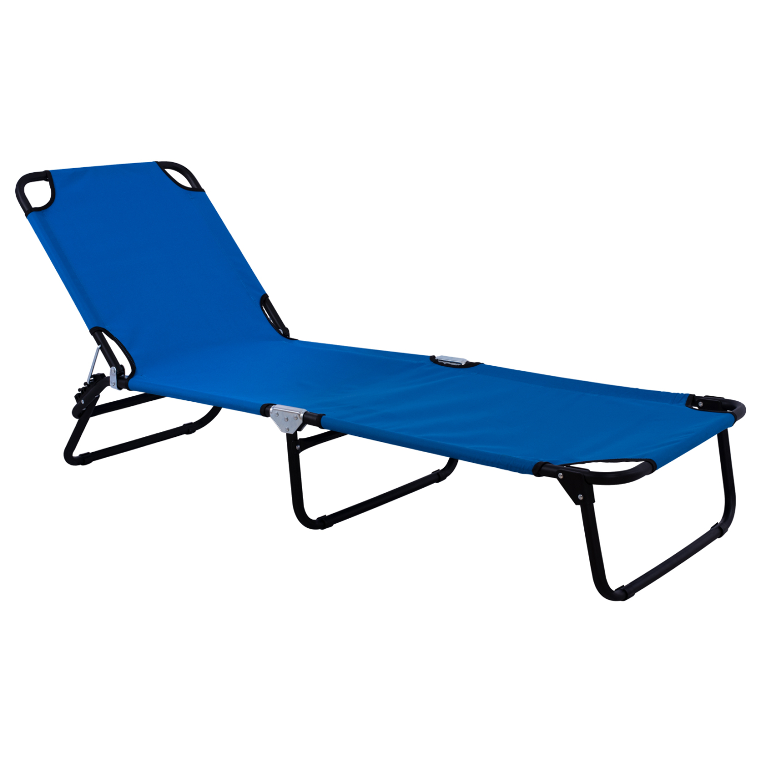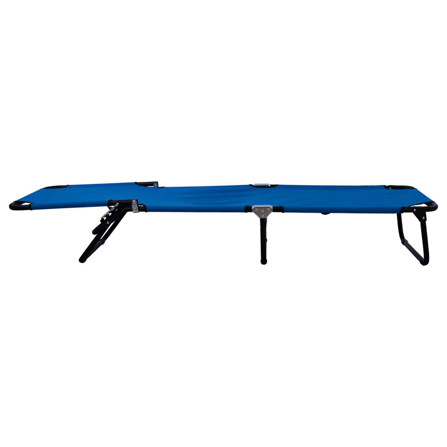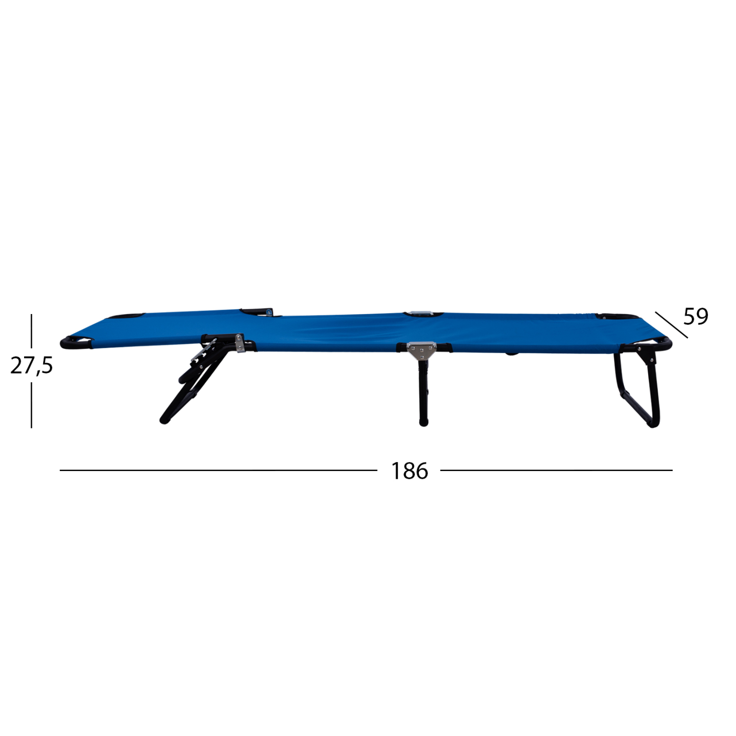 Ξαπλώστρα παραλίας από μαύρο μεταλλικό σκελετό και ύφασμα σε μπλε χρώμα, με ψηλή ανακλινόμενη πλάτη 3 θέσεων.